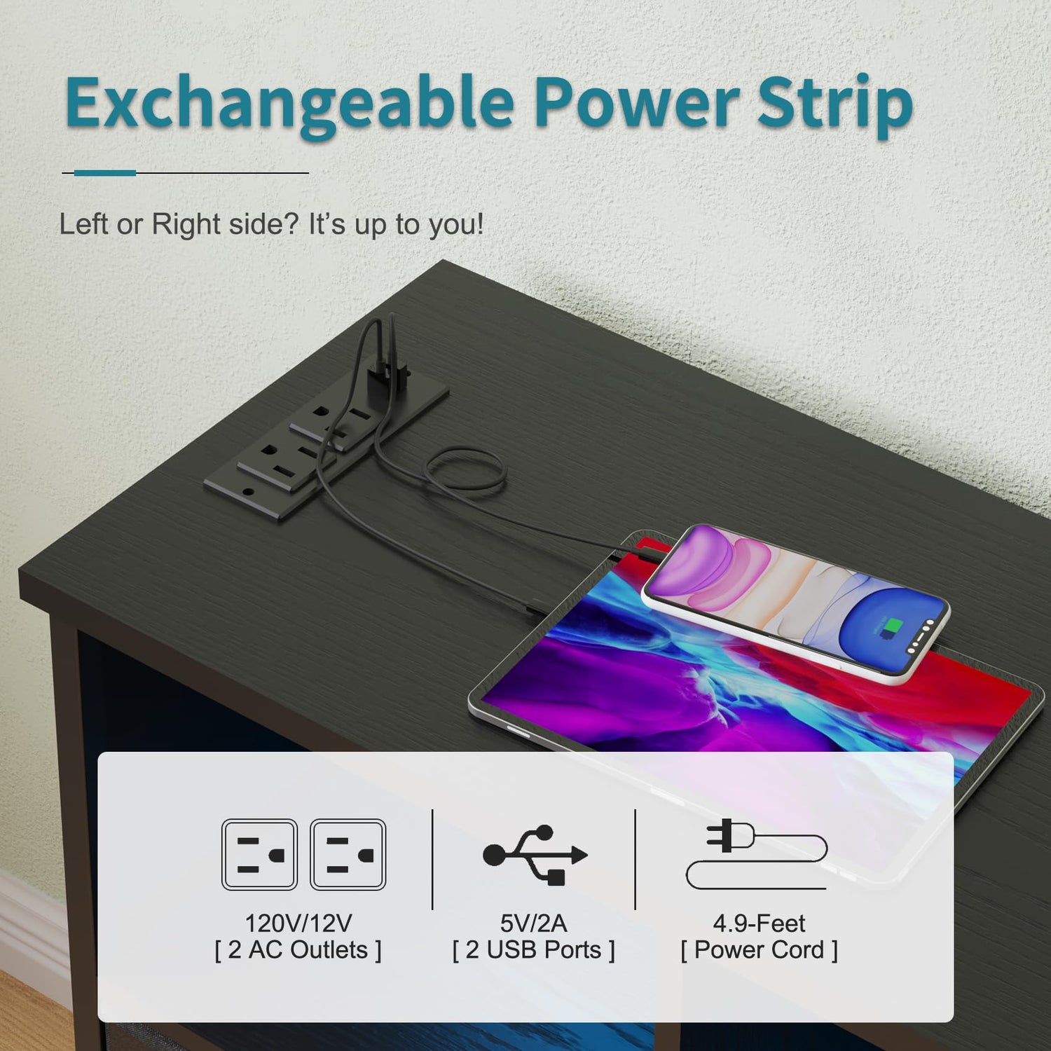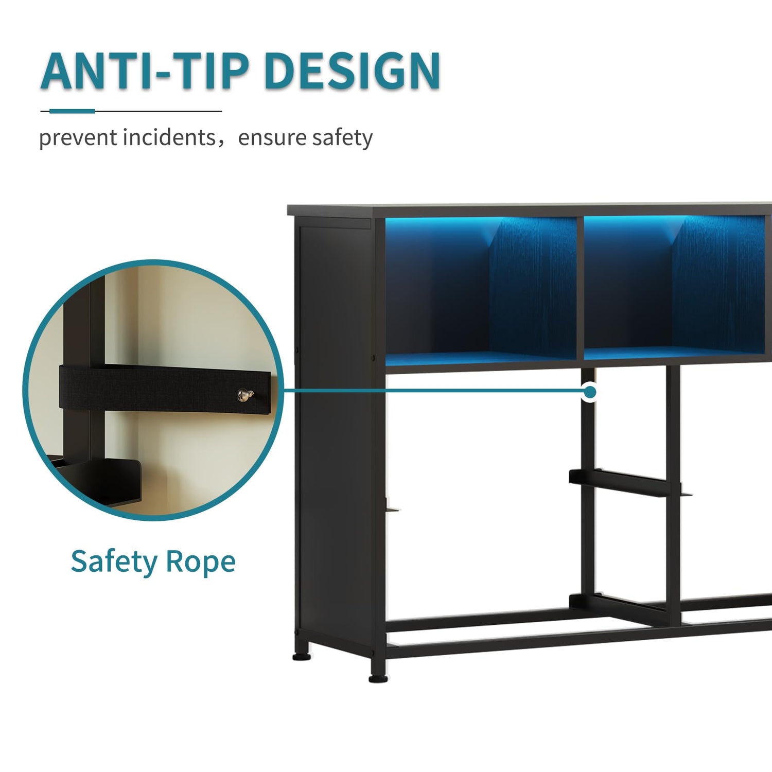 LUMTOK 4-Drawers Dresser with 3 Open Storage Shelves, Fabric Dressers Drawers for Bedroom, Hallway, Nursery, Closets, Steel Frame, Wood Top, Easy Pull Handle (Black)