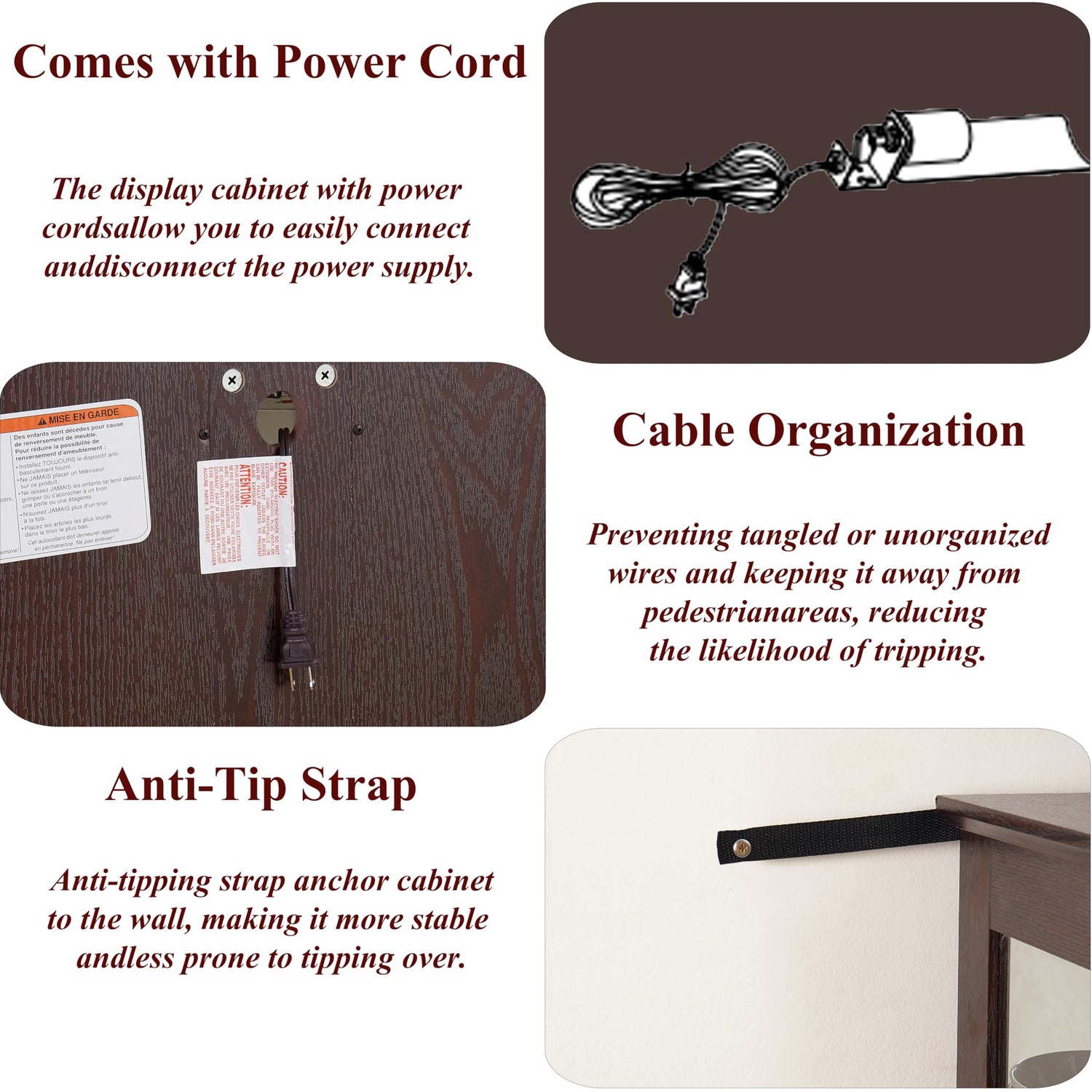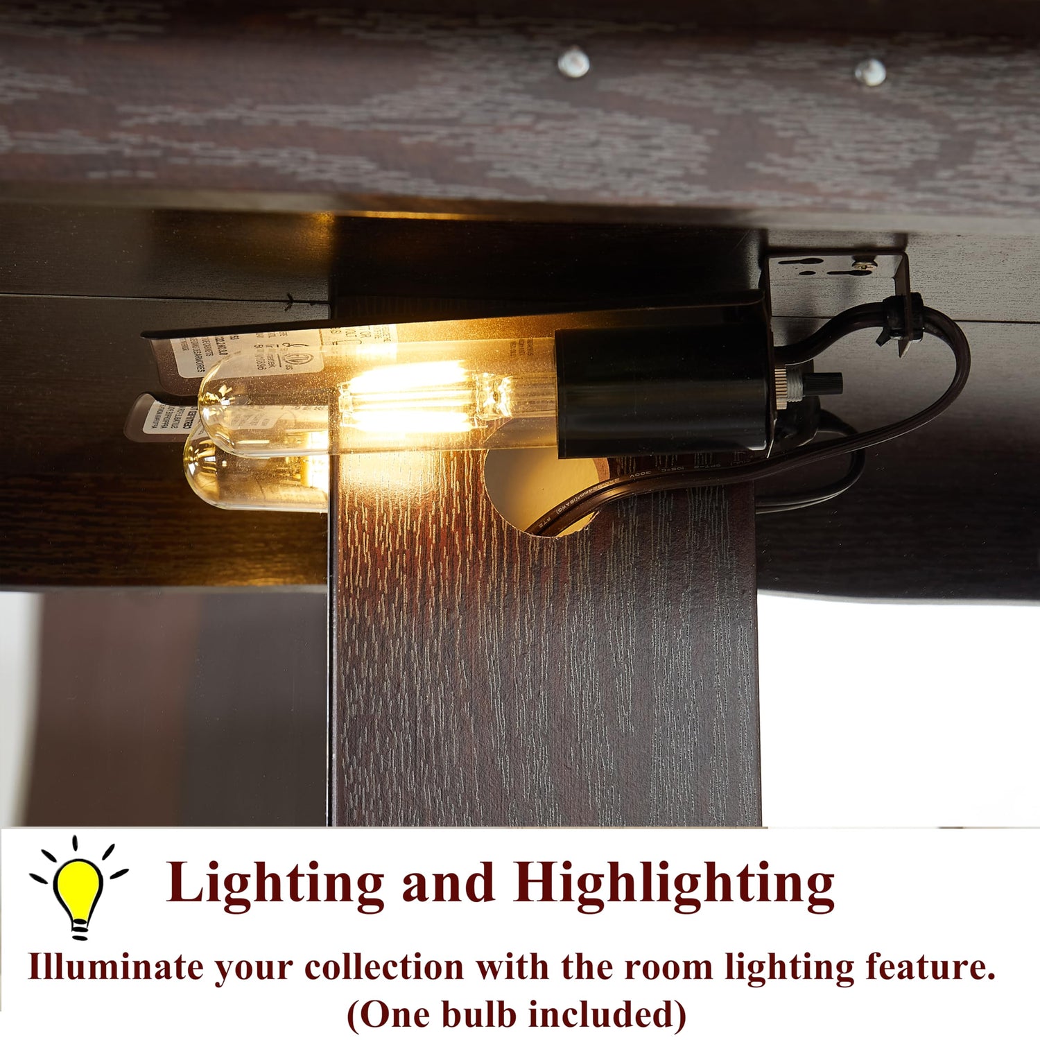 - 【Anti-tippiing Strap Anchor】This glass display case has an anti-tilt design, which can be used to better secure the glass display case. This lighted glass cabinet can be fitted with light bulbs to illuminate the items on your display( Includes 1 x 120V 4W Type T Bulb ). The plugged in design provides continuous lighting for your display items, and the hidden design of the cable sticking out from the back looks simple and beautiful.