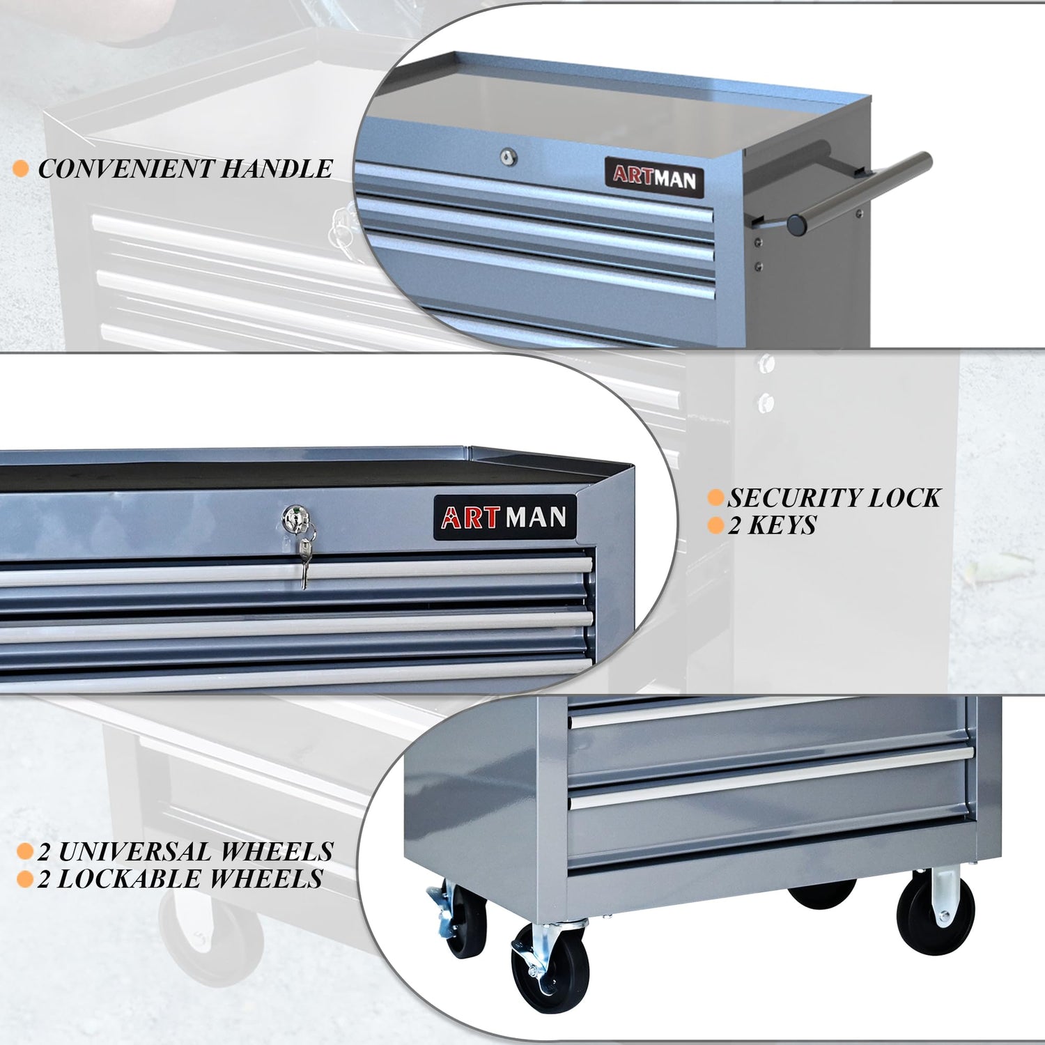 - 【Alloy Steel Material Upgrade】Our rolling tool box is made of thickened cold-rolled steel and sturdy powder-coated steel to withstand frequent use and resist wear and tear. The tool box offers superior strength and longevity, making it ideal for a variety of indoor and outdoor applications.