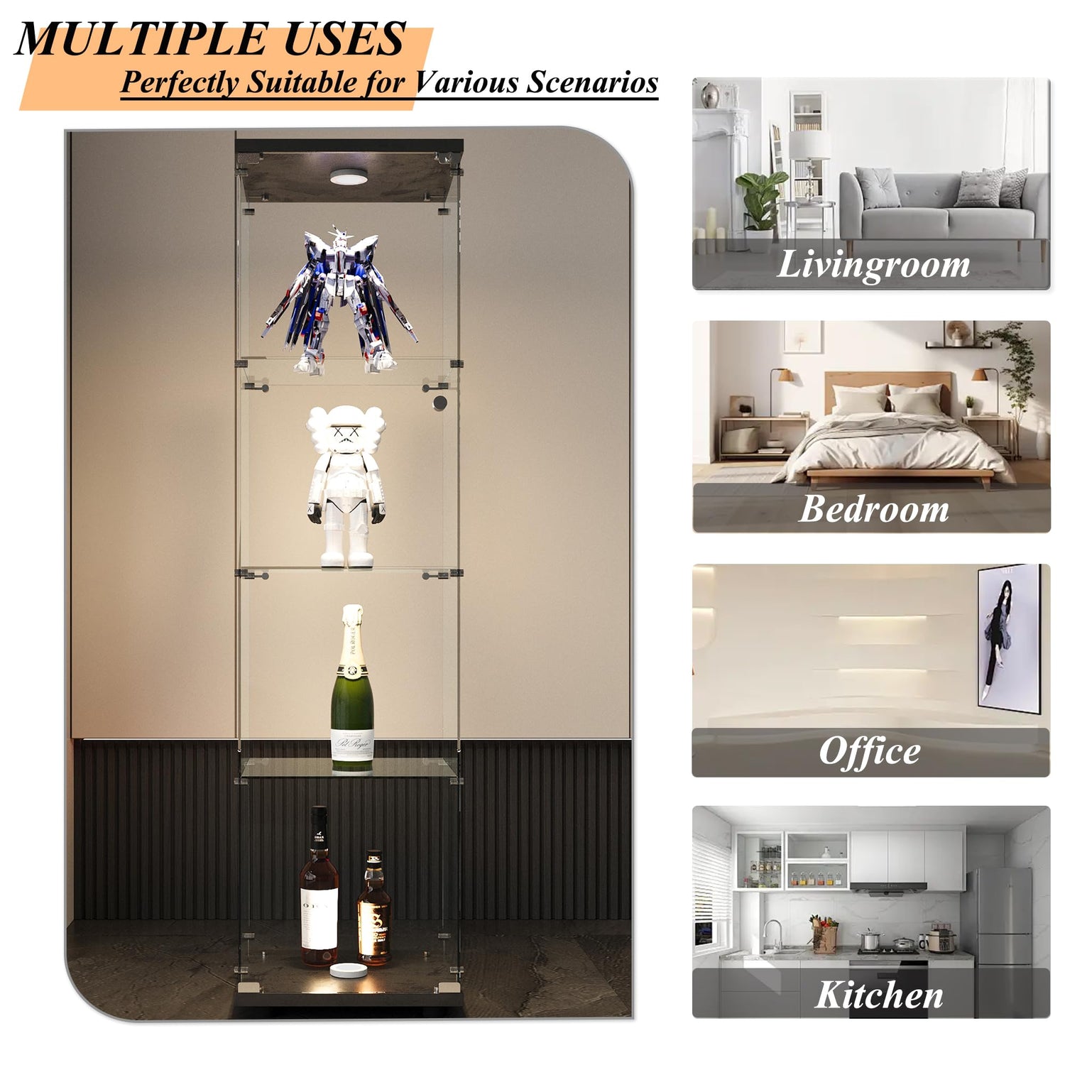 - 【Simple Appearance】The clear frameless design of the bright glass display case allows you to clearly see your favorite antiques, books and toys, suitable for any home style. It is a perfect glass display cabinet that blends perfectly with your elegant home decor and makes your space eye-catching.