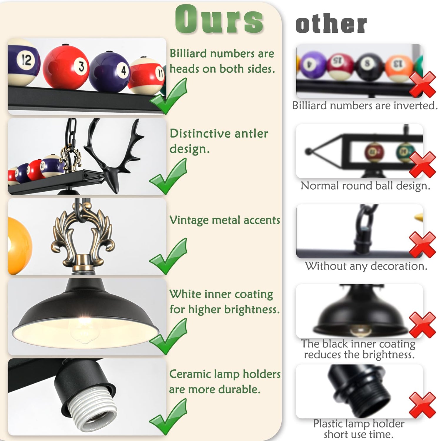 - LuoliiTa Pool Table Light, Billiard Light for 7' 8' 9' Pool Table, Hanging Billiards Light for Billiard Room, Game Room, Restaurant, Coffee Shop
