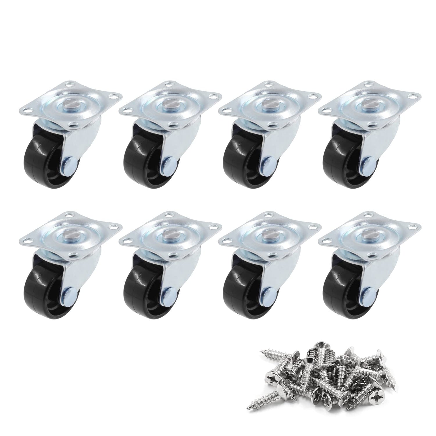 Luomorgo 1 inch Dia Swivel Caster Wheels Rubber Base with Rectangle Top Plate & Bearing Heavy Duty 8pcs