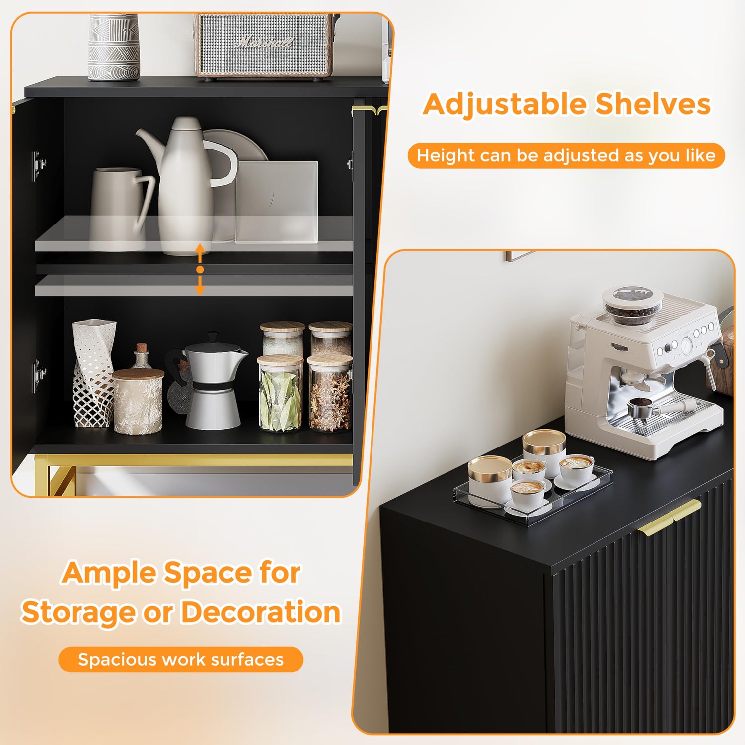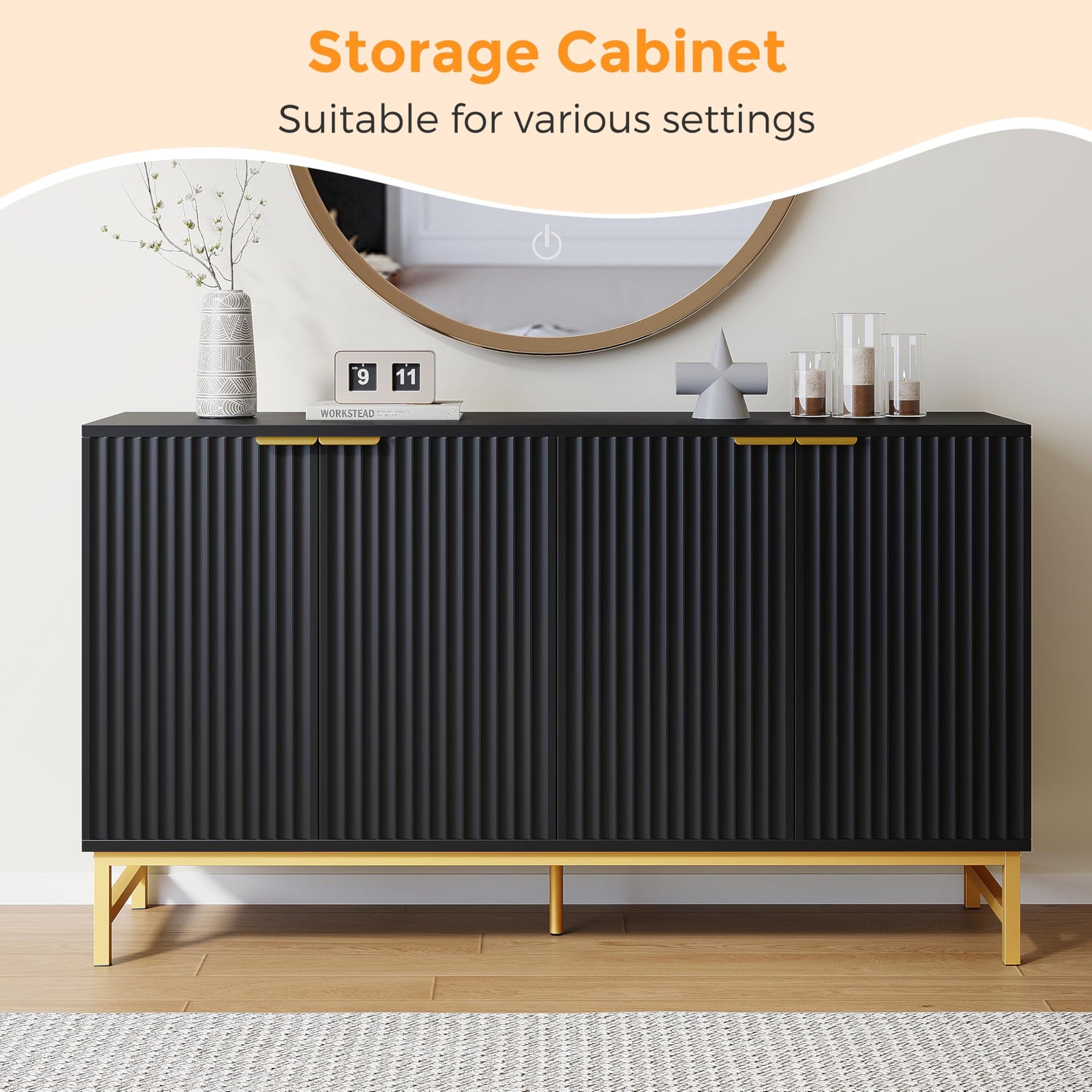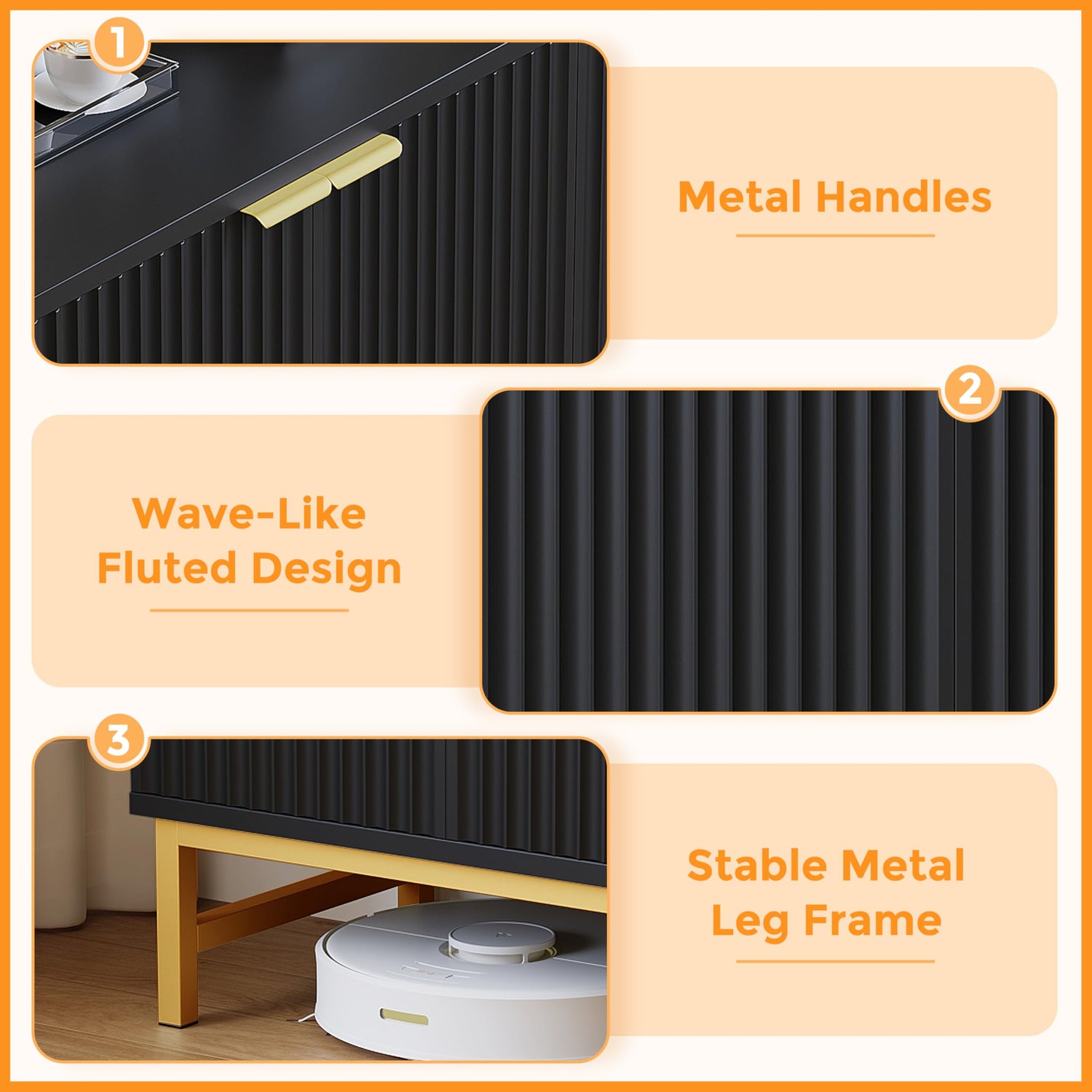 Luoxiao Fluted Sideboard Buffet 55" Console Table for Entryway Modern Credenza Accent Cabinet with Adjustable Shelves Coffee Bar Cabinet for Living Room, Kitchen, Dining Room,Hallway Black