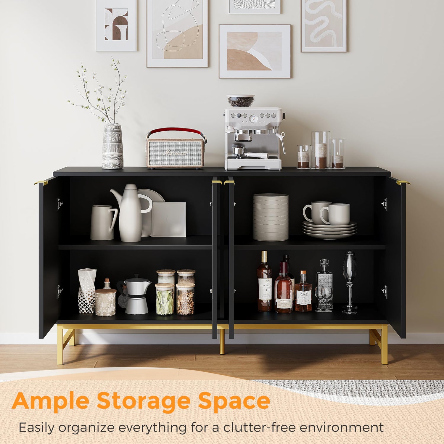 - 【Ample Storage Space】Storage cabinet with ample storage space in both the 4 doors and adjustable shelves, this accent cabinet is designed with your needs in mind. The adjustable shelves are available in 3 different heights, allowing you to customize the storage space to your needs. Whether you're storing large items or small essentials, Luoxiao sideboard can easily help you organize everything for a clutter-free environment.