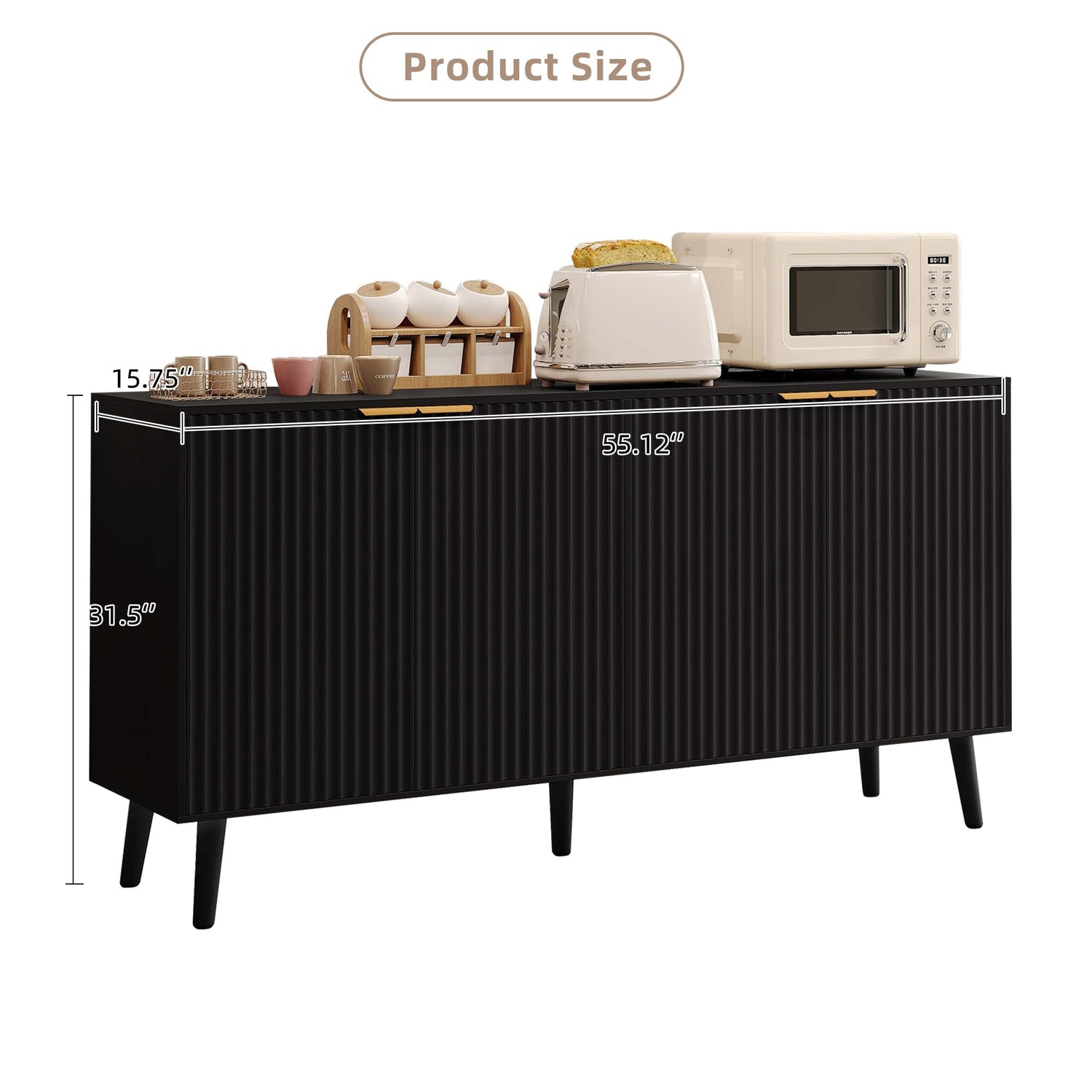 Luoxiao Modern Scandinavian Fluted Black Sideboard Buffet Cabinet with Adjustable Shelves
