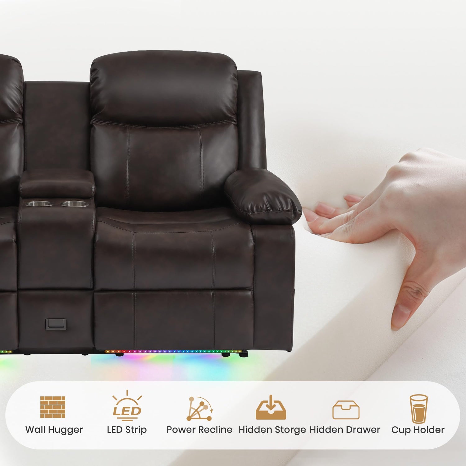 LURVIA 70" Power Recliner Loveseat for RV, Living Room Home Theater,Built-in LED Lighting with Multiple Modes,Wall Hugger, Oversized Leather Loveseat Couch for Camper, Trailer, Apartment,150° Recline