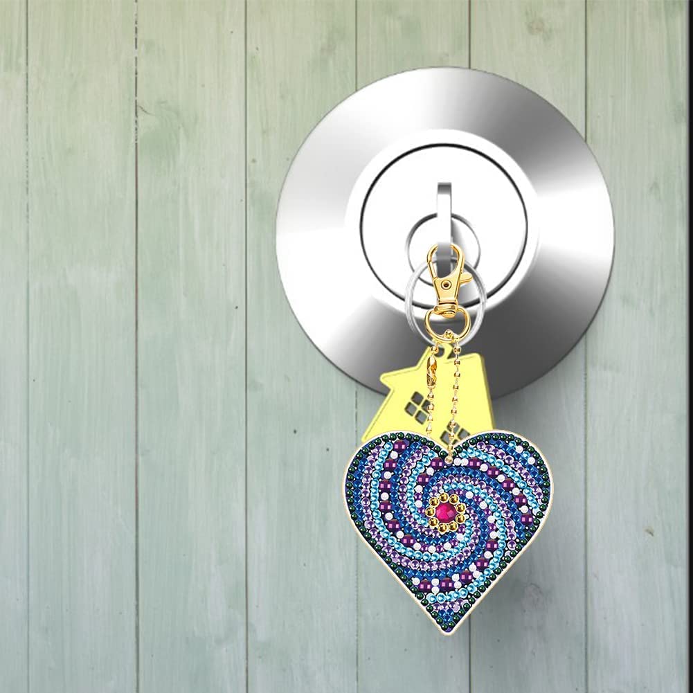 LUSandy 5pcs DIY 5D Heart Diamond Painting Keychain Kits Double Sided Full Drill Special Shape Heart Diamond Art Key Chain Key Ring Set for Backpack Shoulder Bag Accessories Adults