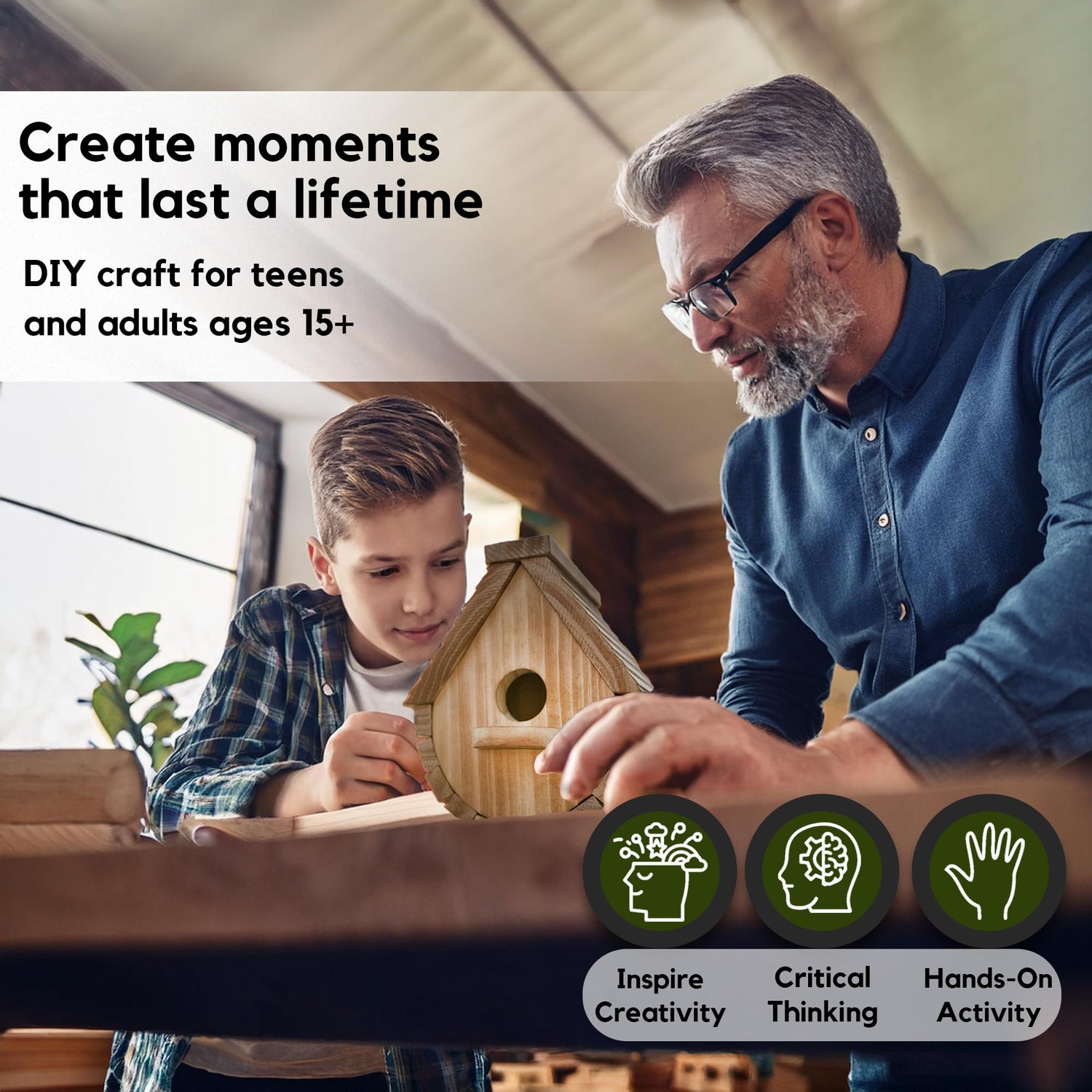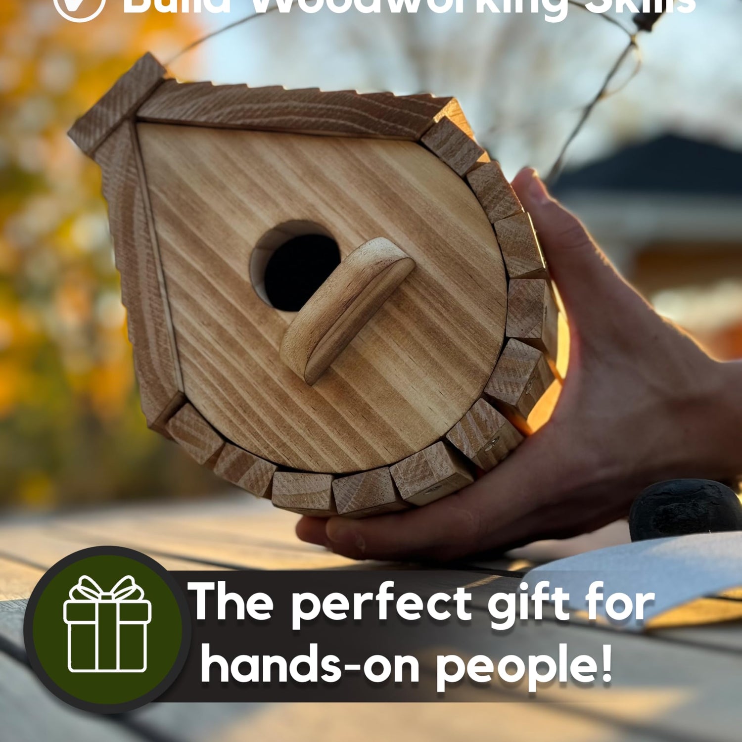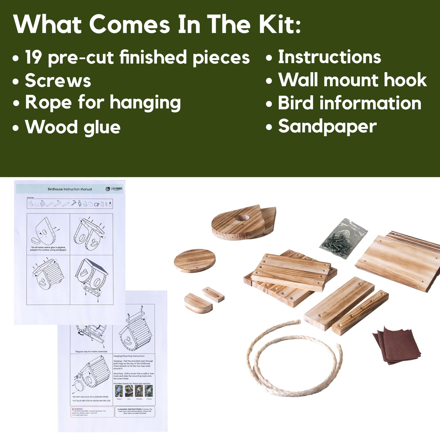 - [PERFECT GIFT] Our outdoor bird house kits for adults are perfect for family and friends. The building kit comes complete with an instruction manual, glue, sandpaper, nails, wooden pieces, and mounting hardware.