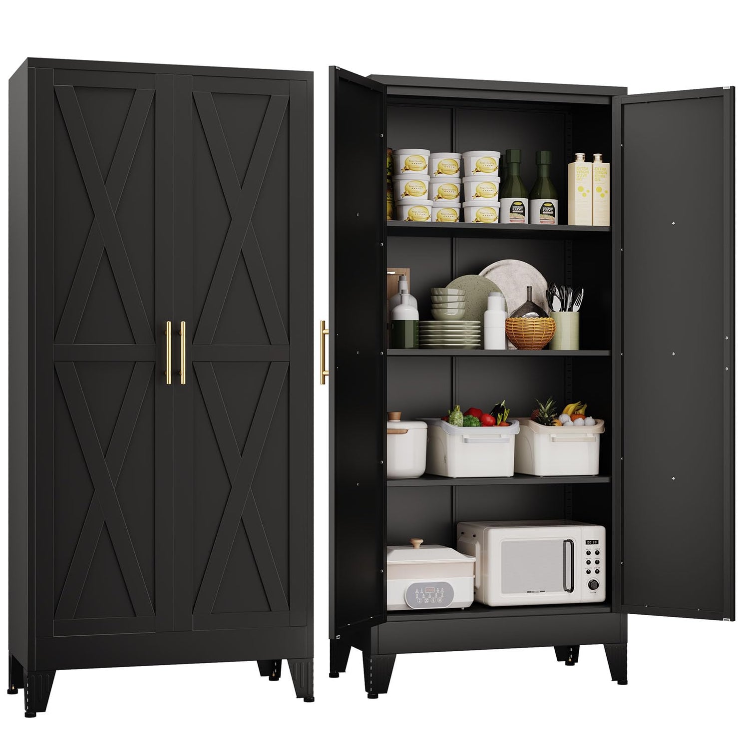 Lusiwry 61" H Metal Kitchen Pantry Storage Cabinet, Freestanding Cupboard with 2 Doors and 3 Adjustable Shelves, Standing Storage for Kitchen, Bathroom, Garage, Dinning Room or Utility Room(Black)