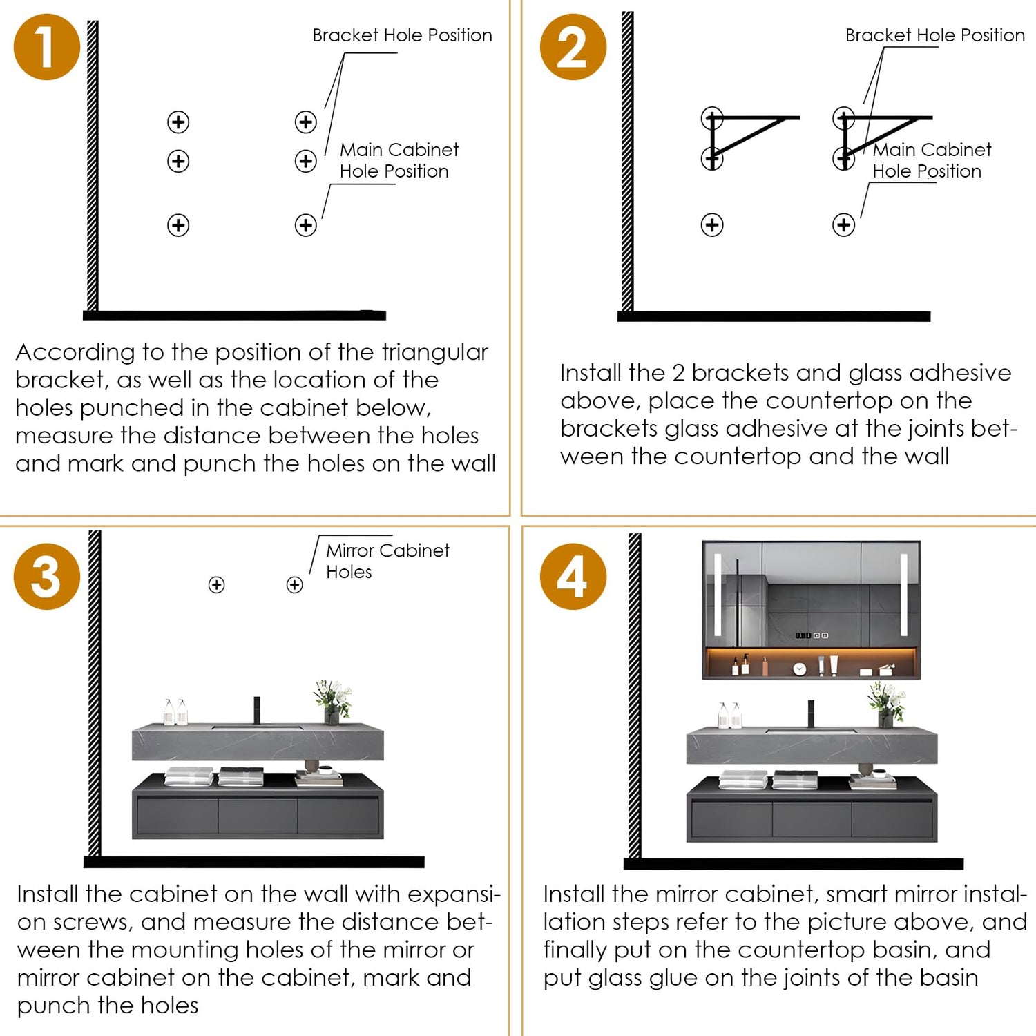 - SPACIOUS STORAGE OPTIONS: The bathroom vanity cabinet provides solutions to abundant storage,featuring multiple partition spaces inside the defogger mirror cabinet. The platform below the vanity countertop is designed for convenient storage.The drawers at the bottom maximize functionality of storage.