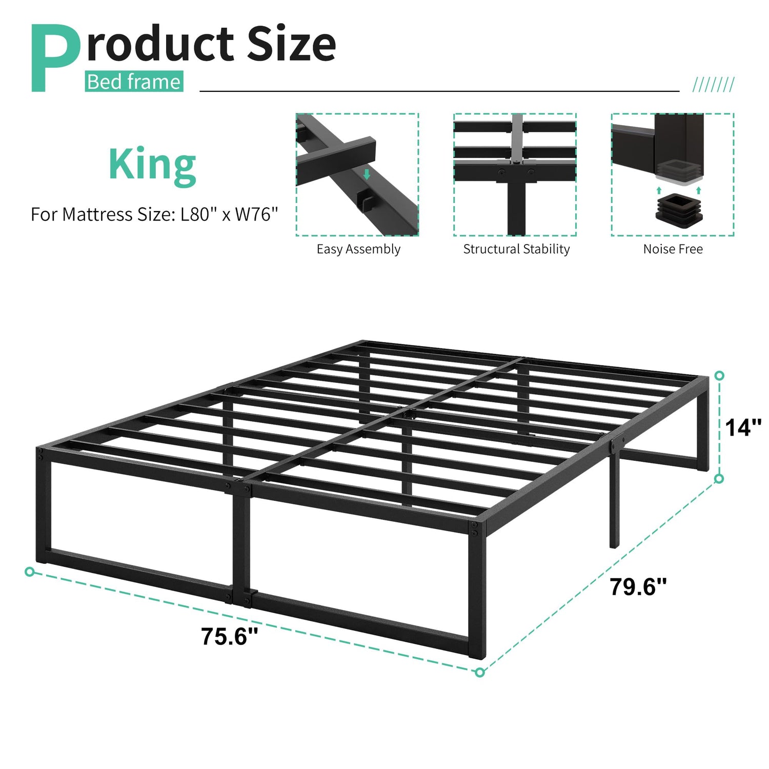- MINIMALIST STYLE: This modern king bed frame with simple structure design, also come with classic will go well with your bedroom and bend with any furniture in your room.