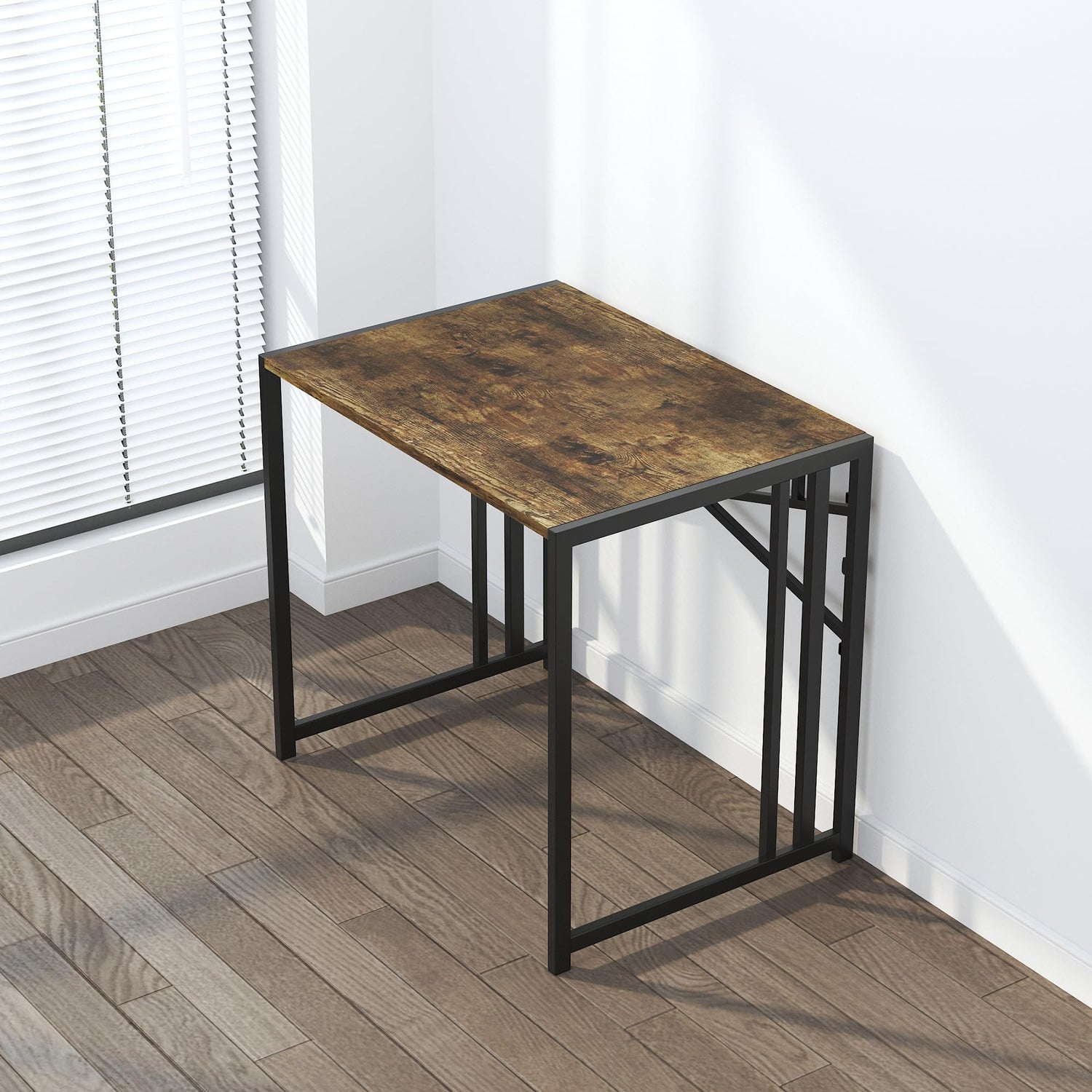 Lutown-Teen 32 inch Small Folding Computer Desk, Writing Gaming Computer Desk for Small Spaces, No Assembly Required Home Office Desk, Rustic Brown