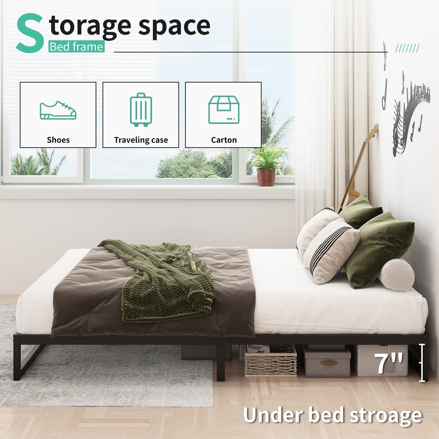 Say goodbye to the hassle of needing a box spring. This innovative bed frame features robust metal slats that provide exceptional support for your spring, latex, and memory foam mattresses. With slats spaced just 7.44 inches apart, you can rest easy knowing your mattress is optimally supported to enhance its lifespan.