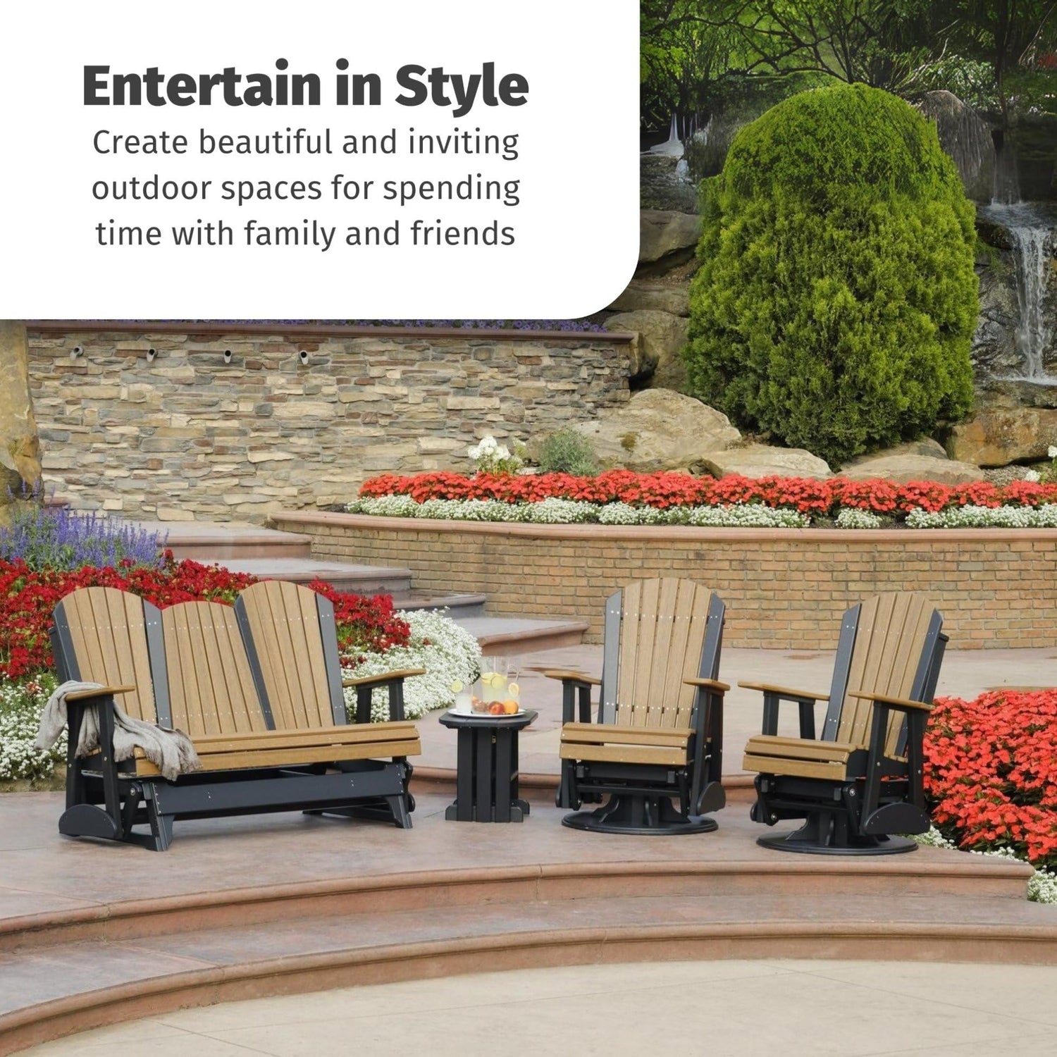 LuxCraft 5' Adirondack Double Glider Bench, 2 Person Glider Chair, Outdoor Glider Bench, Outdoor Loveseat Glider (Dove Gray on Black)