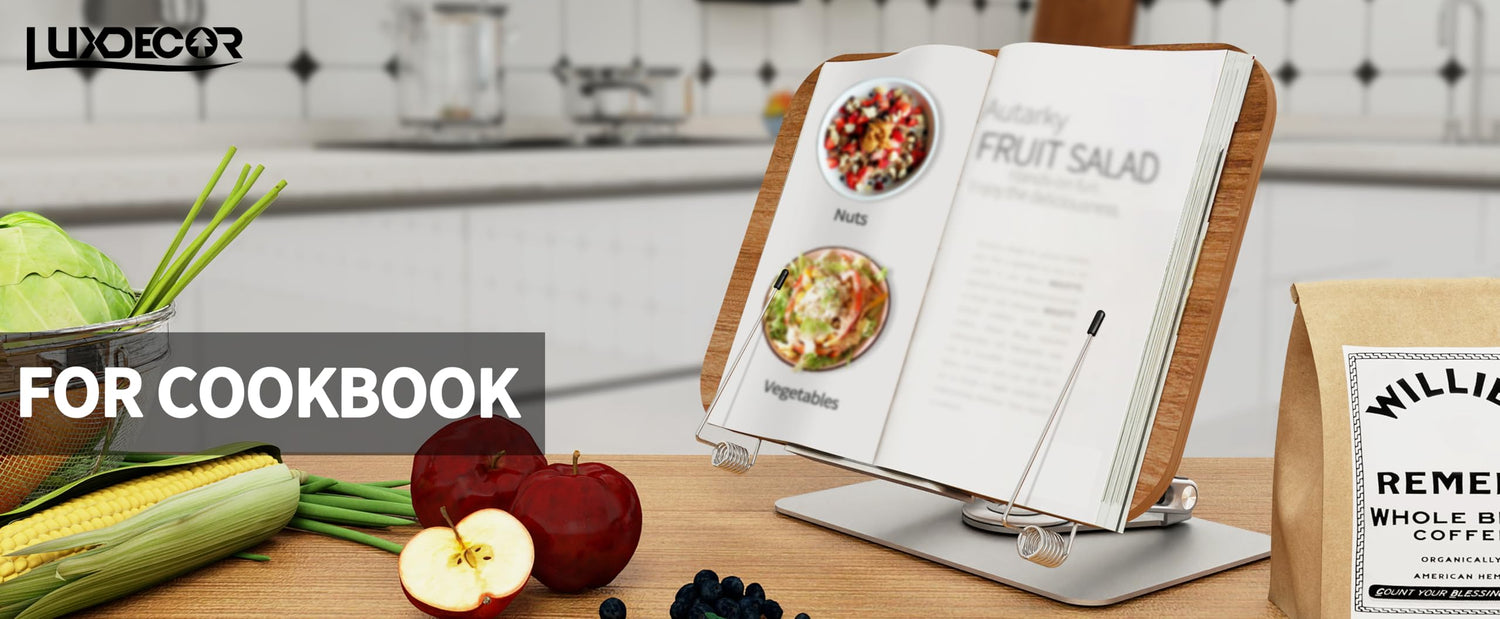 - 【Versatile Functionality】: The book display stand is a must-have for your kitchen and desk. It acts as a cookbook holder, recipe binder, music stand, and even supports a MacBook. Its adjustable height and angle make it ideal for cooking, working at your desk, or reading hands-free in bed.Whether for students, professionals, or anyone in between, its versatility makes it an exceptional giveaway for enhancing both culinary and work experiences