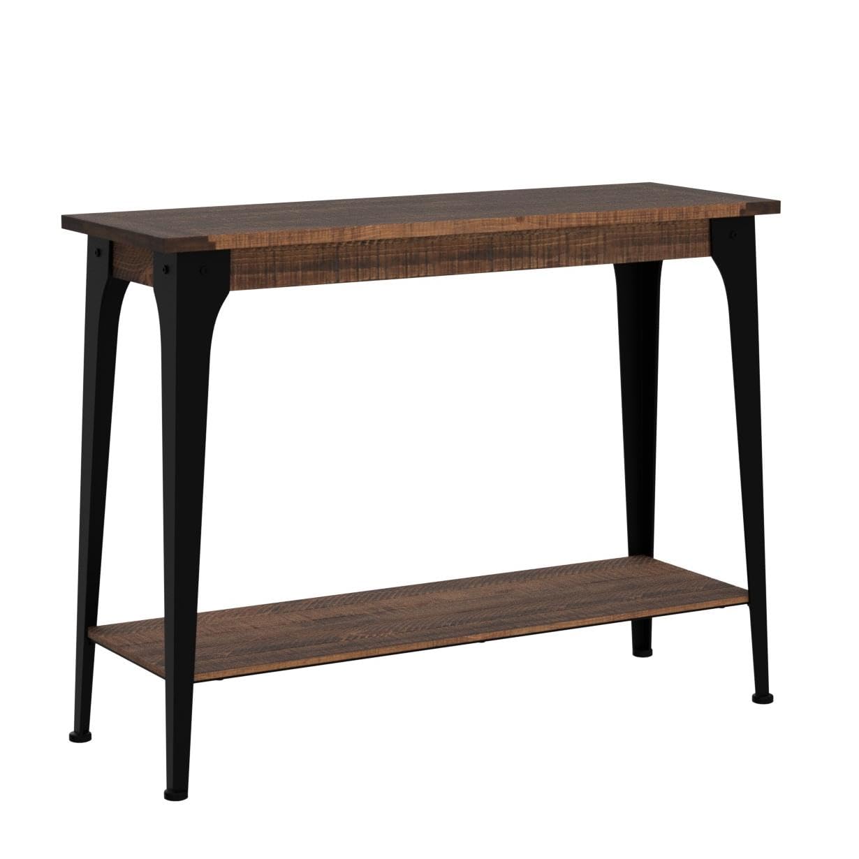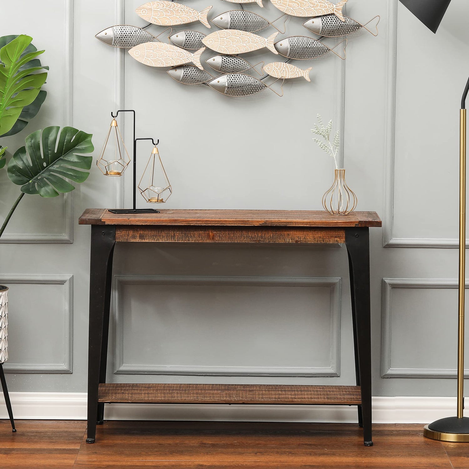 - Farmhouse Console Table: Elevate your home with this elegantly crafted rectangular console tables for living room. Boasting a simple yet sophisticated design, it showcases a natural-finish wooden tabletop supported by four sleek matte black metal legs. The fusion of modern and classical elements in our rustic console table effortlessly enhances your home decor, adding a touch of timeless style.