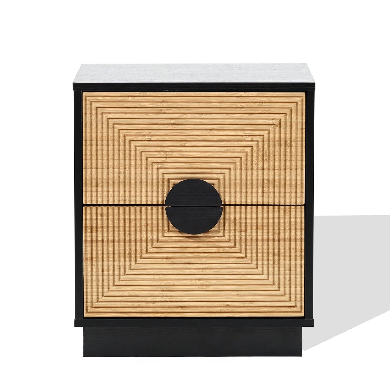 LuxenHome Night Stand, Mid Century Modern Nightstand with 2 Drawers, Boho Bedside Table with Bamboo Strips Pattern, Small End Tables Living Room or Bedroom, Small Side Table with Storage, Black/Brown