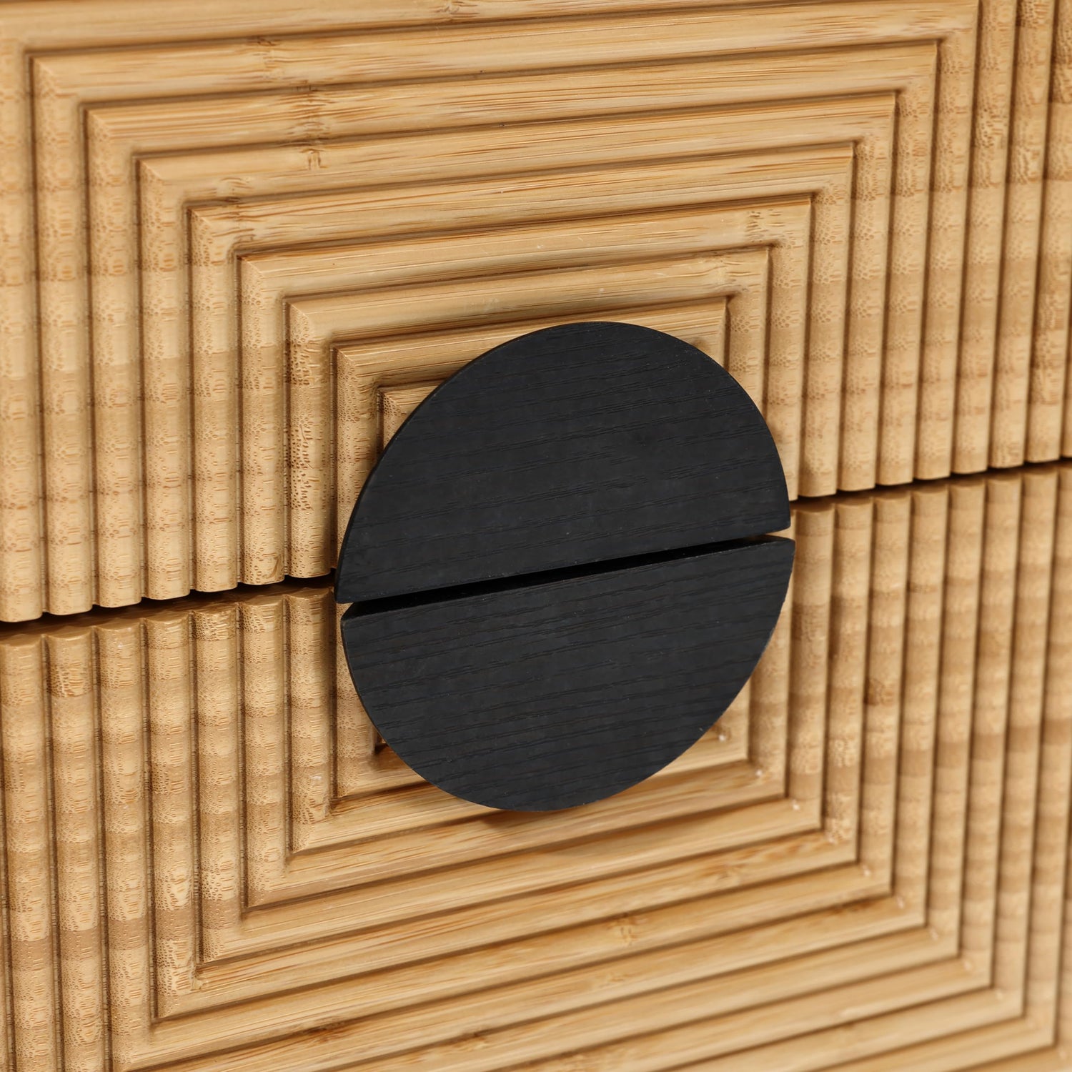 - High Quality: Each modern boho nightstand is meticulously crafted using high-quality materials, resulting in a warm and rich appearance. Constructed with bamboo strips for a natural and contemporary look, the wood side table with drawer features black half-moon shaped handles that provide easy access to stored items.
