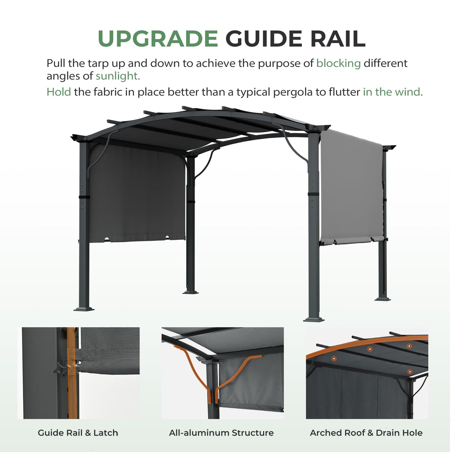 LUXIJOY 10 x10 Arched Outdoor Pergola Patio Metal Pergola for Deck, Outdoor Retractable Pergola with Canopy and Hardware, Small Aluminum Pergola with Canopy Fixed in Various Positions (Grey)