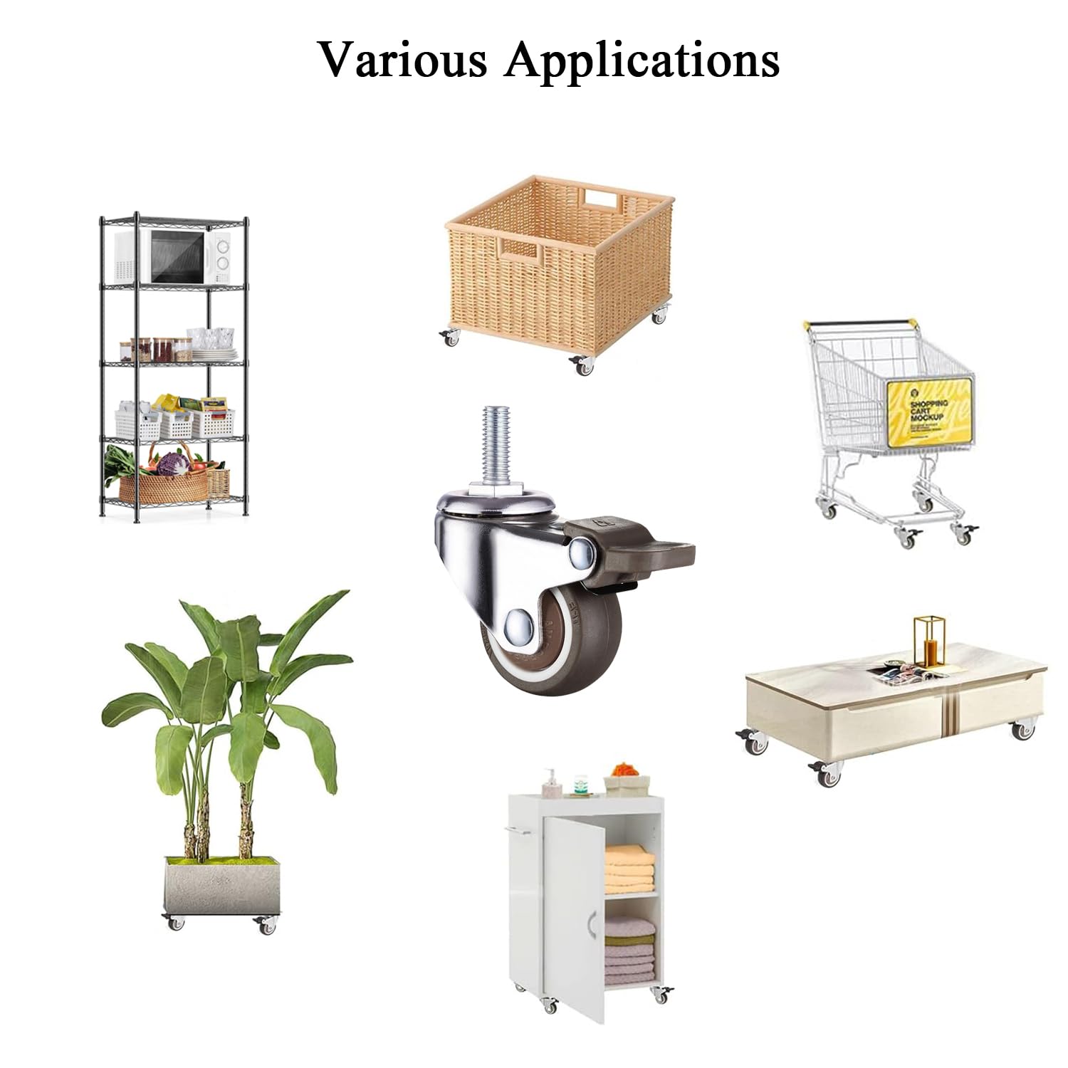 - WIDE RANGE OF APPLICATIONS: These m6 caster wheels are perfect for DIY project in homes, schools, kitchens, stores, offices, and many. Perfect for small furniture, including chairs, tables, plant stands, book shelves, wire shelving, storage shelf, cabinets, tiny shopping cart and trolleys and more. The m6 casters easy movement and work without effort.