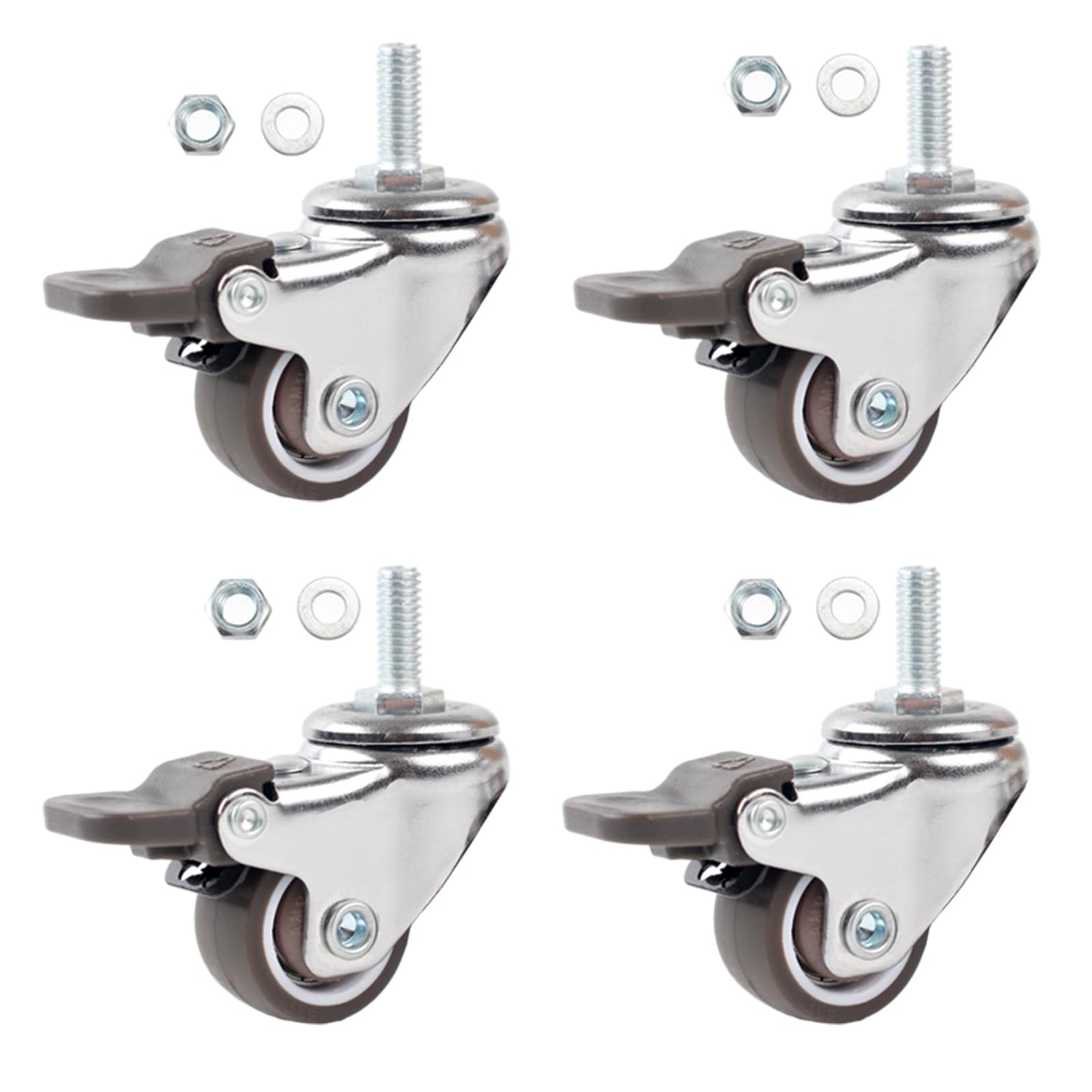 - EASY TO INSTALL: Our 1 inch caster wheels with m6 threaded stem (4 with Brakes) comes mounting nuts and washers. Your can easily mount the 1" casters on any furniture smooth and easy rolling. Or use 15 mm screw wheels to make a tiny carts. Each set of 4 caster wheels can support up to 120 lbs/55 kg of weight.