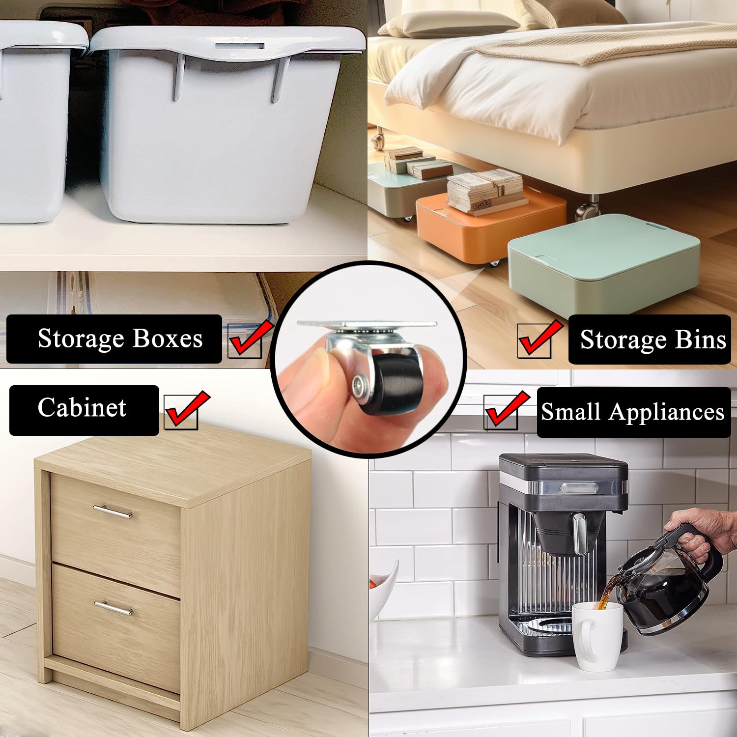 - Stronger Adhesion: Our small wheels for furniture use strong adhesive, ensuring a stronger and more reliable bond. No need to wait for 24 hours when installing! Move your kitchen appliances and furniture with ease by using these new self adhesive mini caster wheels to move heavy objects onto your equipment, roll smoothly and slide in and out with ease.