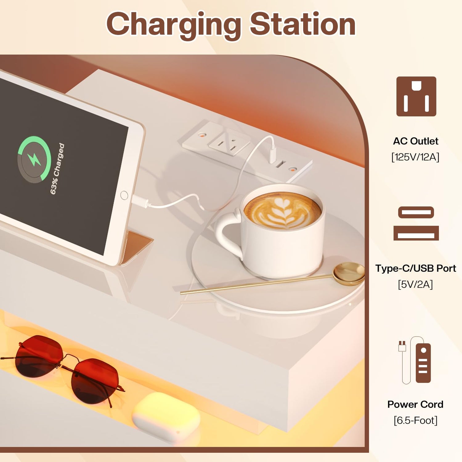 - 【Charging Station】Only Side table comes with 2 AC outlets, 1 USB port, 1 Type-C port and a 6.5-foot power cord. Keep your electronics at all times. Suitable for living room, game room, office