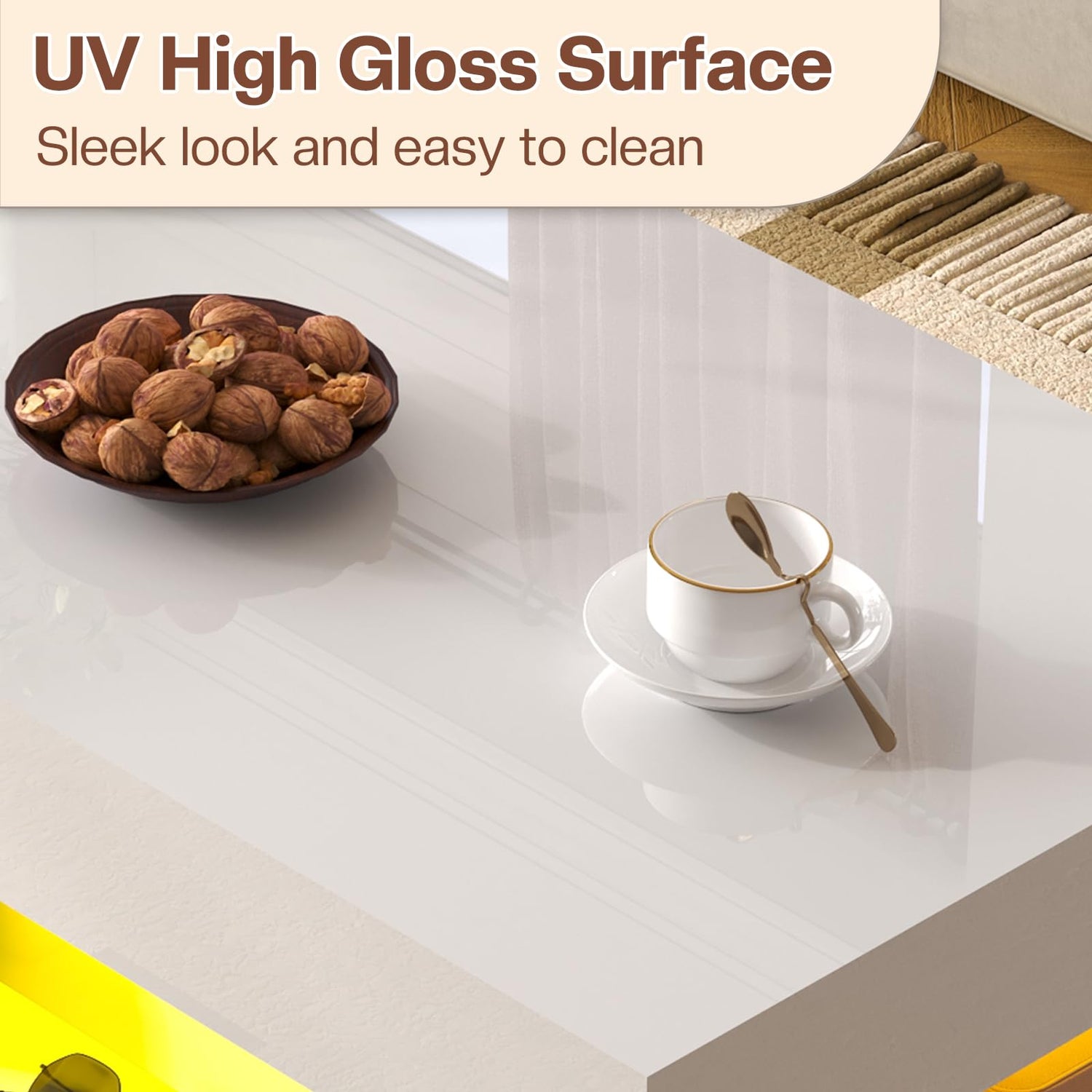 - 【High Gloss Surface】Modern high gloss coffee table set adopts a glossy surface that is easy to clean and has strong wear resistance. Sleek appearance perfectly matches modern furniture style, adding charm to your room