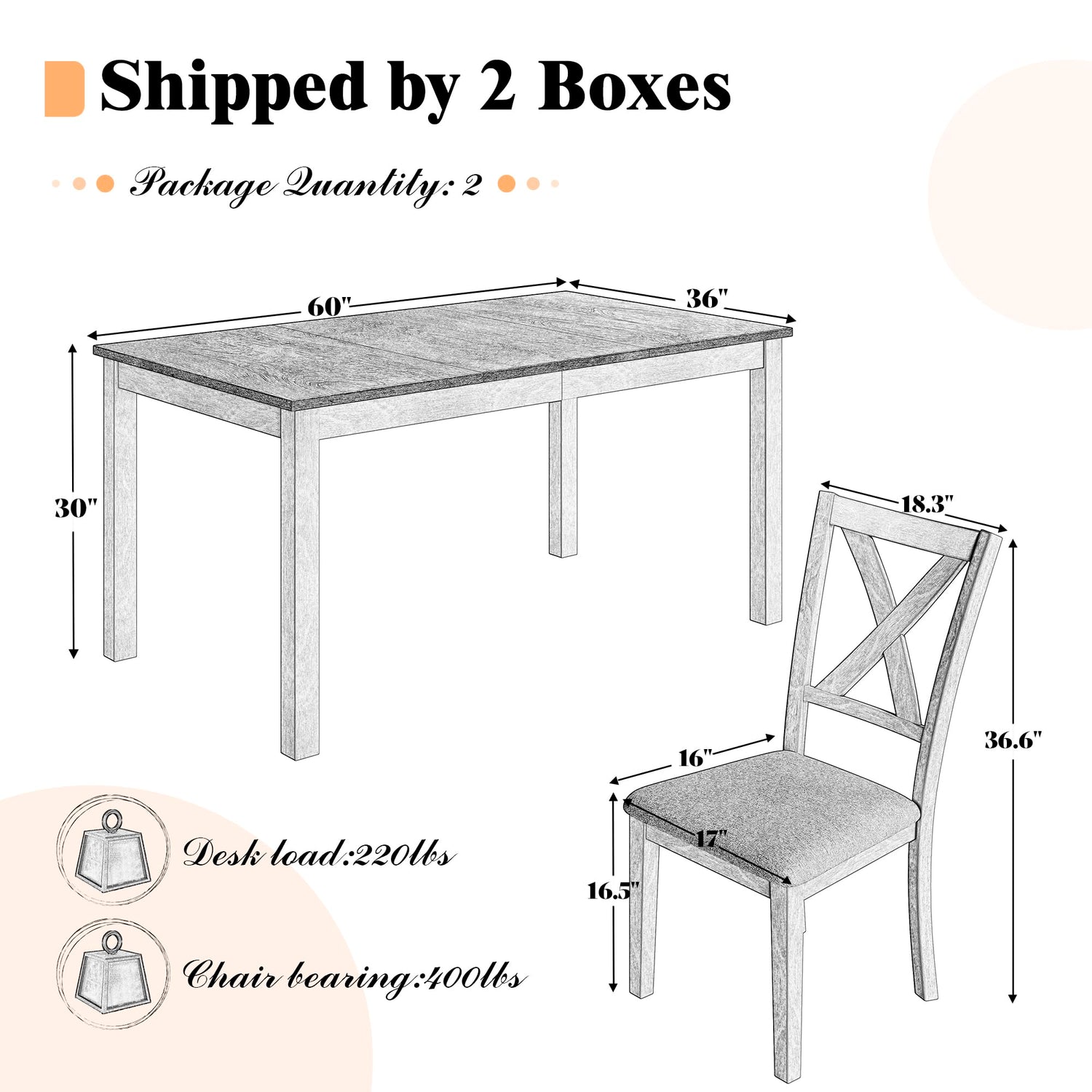 - Perfect for 4-6 Persons: This table chair set includes a spacious table and six chairs, making it ideal for family meals or gatherings with friends. Table size: 60"L x 36"W x 30"H; Chair Size: 18.3"L x 21.6"W x 36.6"H. Perfect for enjoying your dinner time.