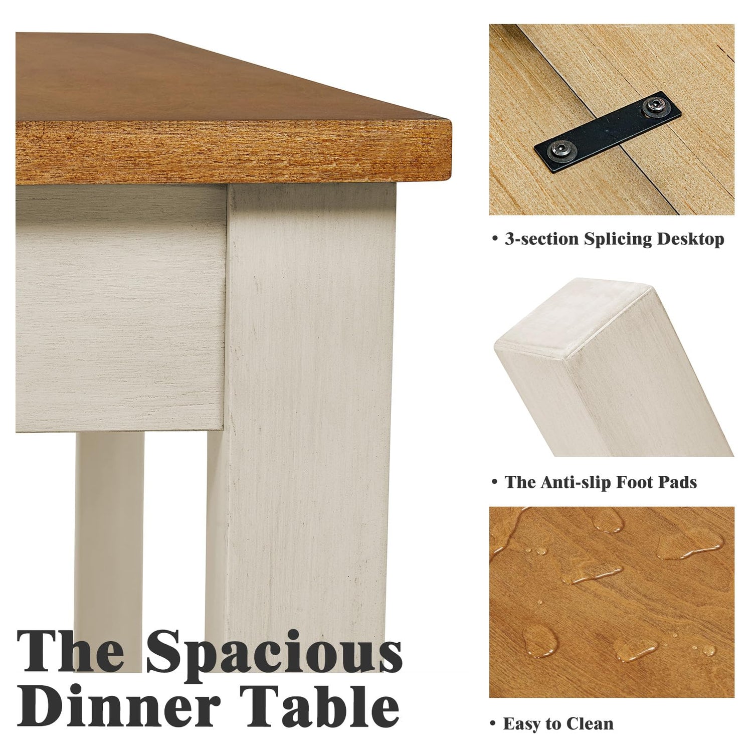 - Safe & Stable: Crafted from solid wood, this kitchen table set offers durability, and the tabletop adopts a three-section design, provides strong weight-bearing capacity. The anti-slip foot pads provide extra grip, and protect your floors.