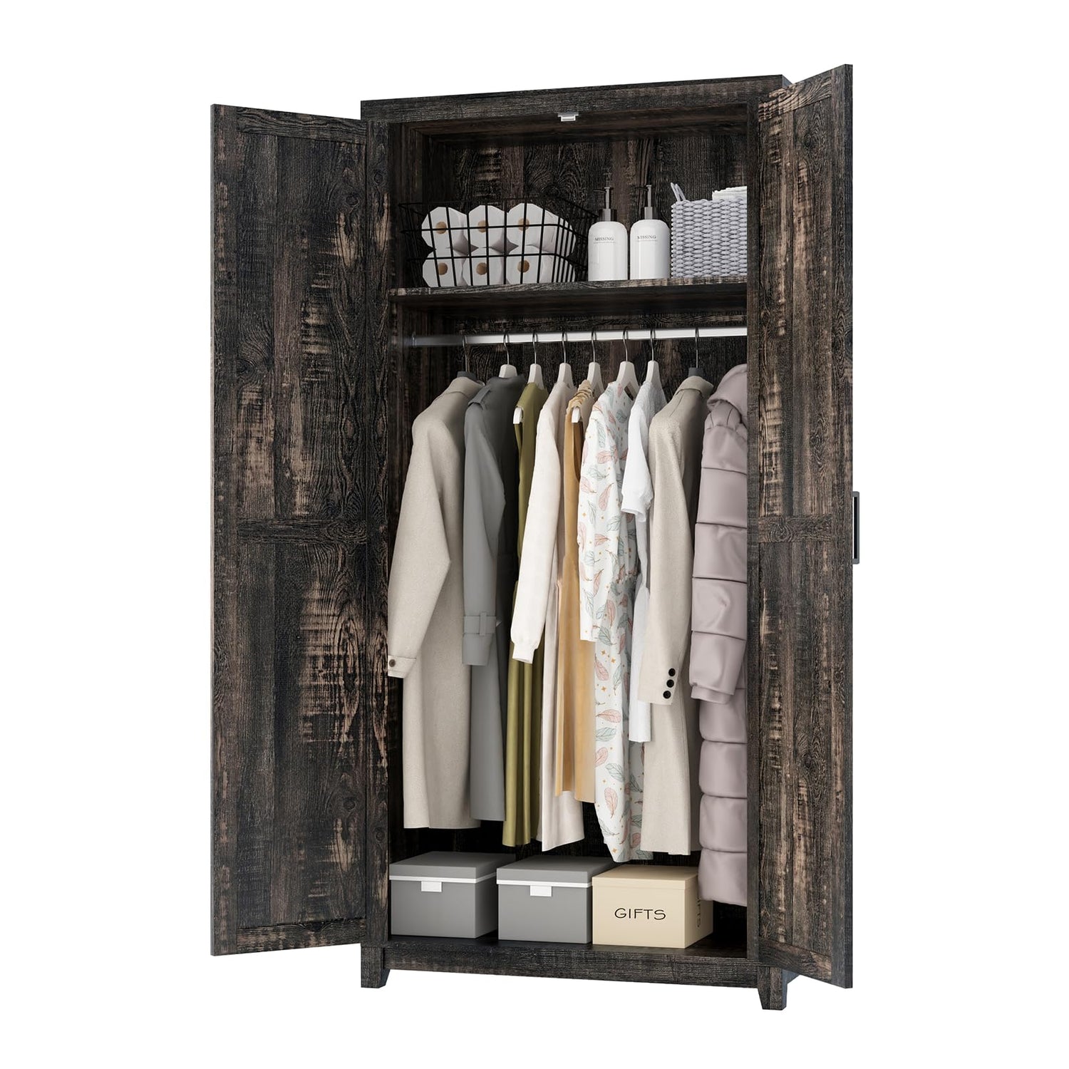 - FARMHOUSE STYLE - 2 large barn doors in farmhouse bedroom armoire show a strong rustic and classic style. Combination of black hardware and woodgrain finish emerges the exquisite design.