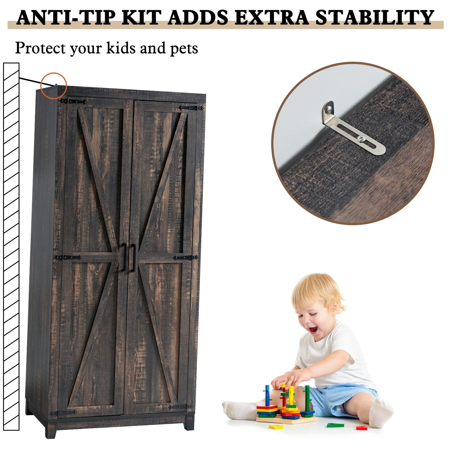 - STABLE AND SAFE: High-quality MDF and sturdy structure with an anchor kit and 4 support legs make wood armoire stable for long-term use. Anti-tipping device is provided to avoid tipping and keep safe.