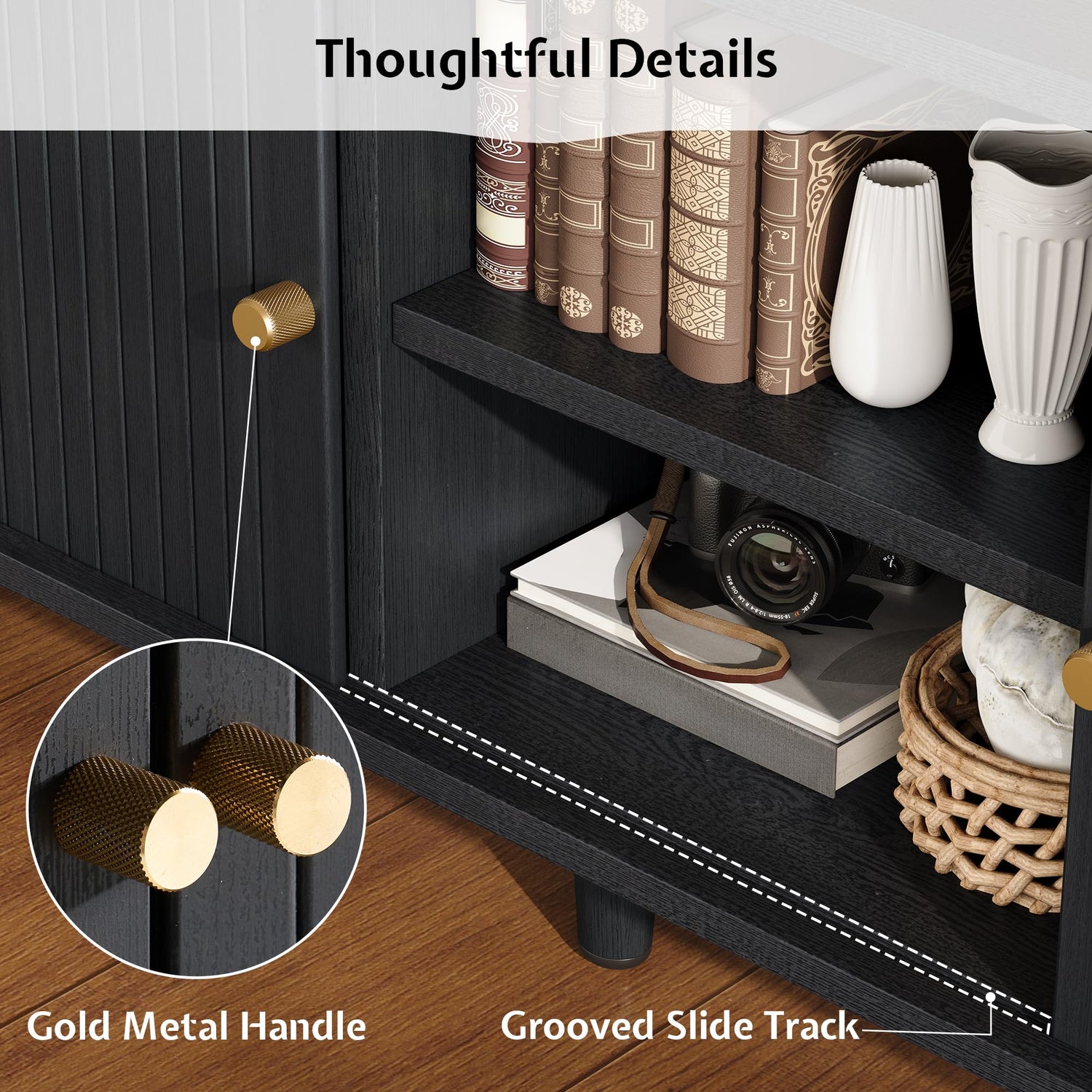 - Chic Tambour Doors: The innovative tambour door design keeps your fluted TV stand dust-free, while the stylish gold metal handles add a touch of elegance. Hidden doors ensure a streamlined, modern look and enhanced functionality