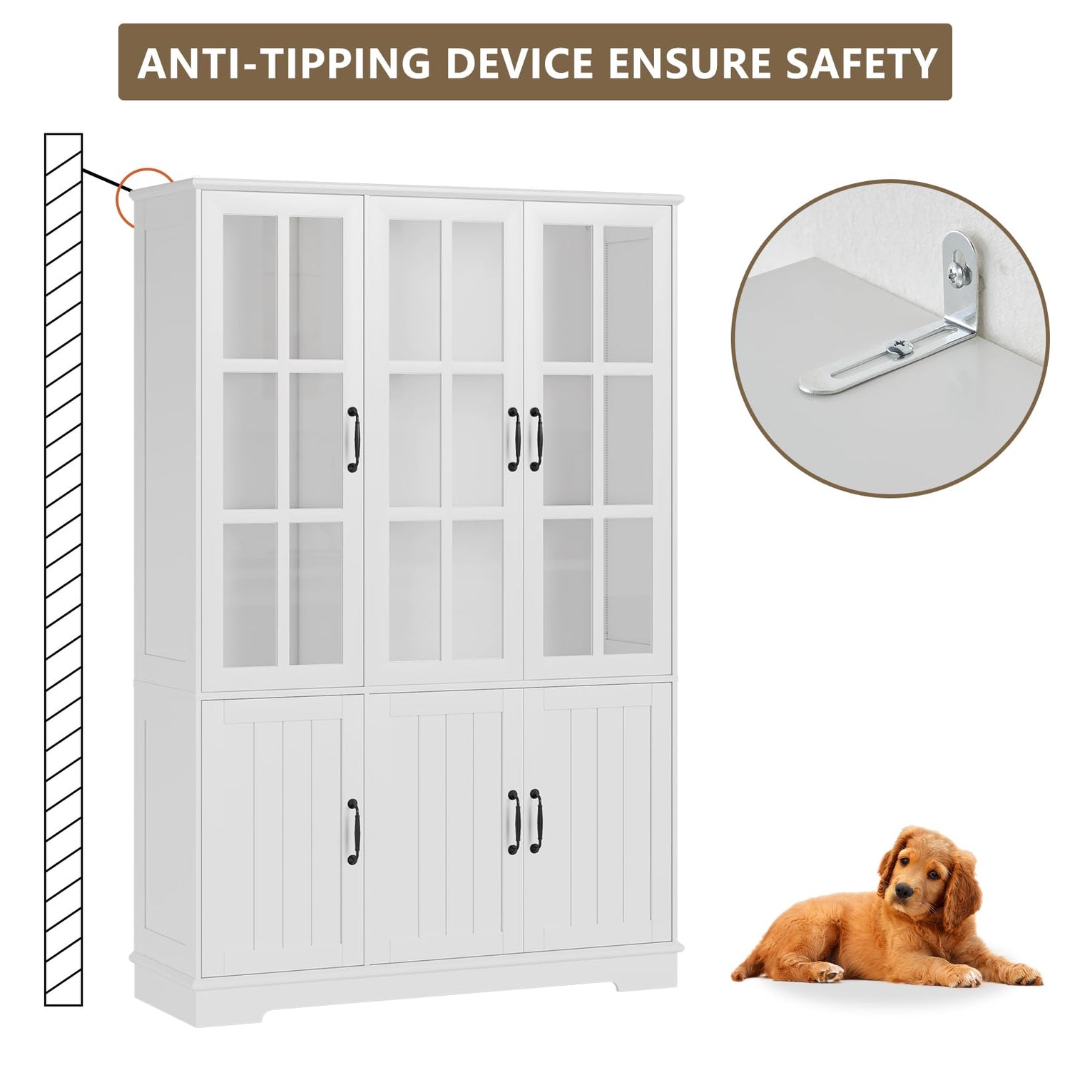 Safety and stability are paramount; this tall storage cabinet is constructed from high-quality engineered wood and hardware. It's equipped with an anti-tipping device to ensure that it remains securely fastened to the wall, providing you with peace of mind.