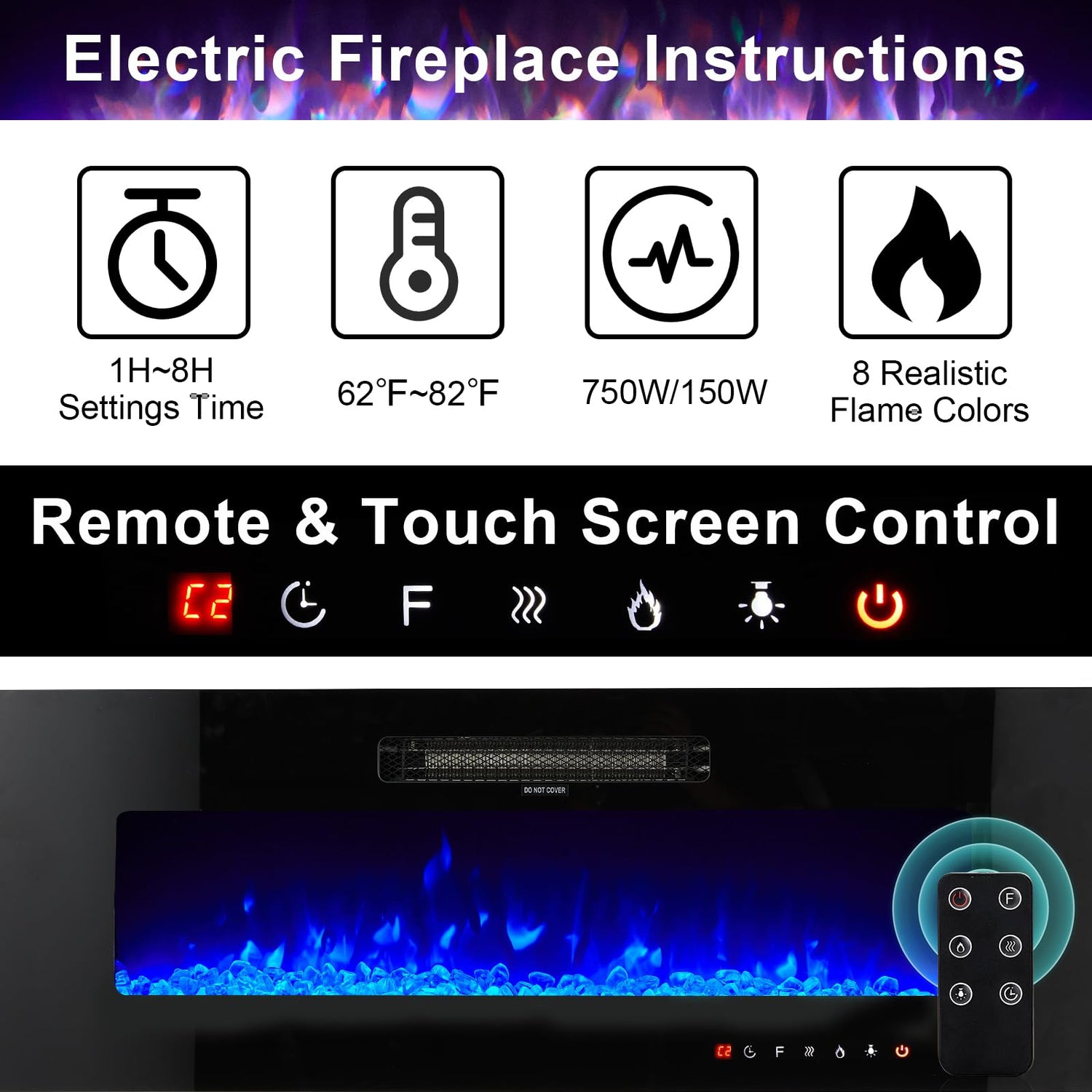 - 40" Electric Fireplace: Fireplace insert can be used with or without heat. Temperature change,8 realistic flame colors, time setting, and 5-level dimmer can be remote or touch screen controlled. Max 4800 BTU output.