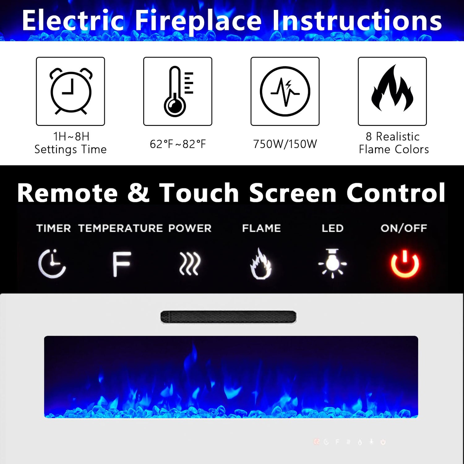- 40" Electric Fireplace: Fireplace insert can be used with or without heat. Temperature change,8 realistic flame colors, time setting, and 5-level dimmer can be remote or touch screen controlled. Max 4800 BTU output.