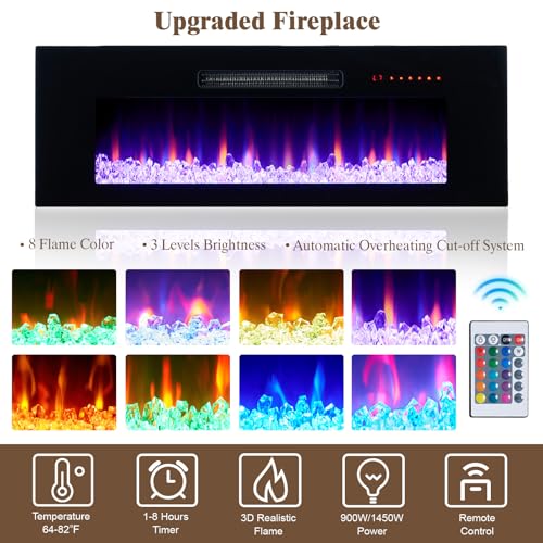 - 【Multifunctional Fireplace】Provide 8 changeable realistic flame colors & 3 levels of dimmer, temperature control, and timer setting. Max 4,800 Btu powerful output heat a room up to 400 sq. ft.