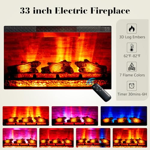 - 【Warm & Cozy】33" fireplace with a 3D log-like design, heating up to 400 sq. ft. With independently adjustable flames and temperature settings for year-round use. Overheat protection ensures safety for your family