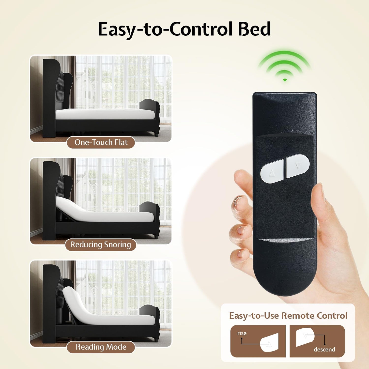 - 【Convenient Remote Control】Angle of bed can be easily adjusted by remote control, bringing a comfortable rest. Unique hook design allows you to store it in a designated place, keeping bedroom tidy and easy to use at night
