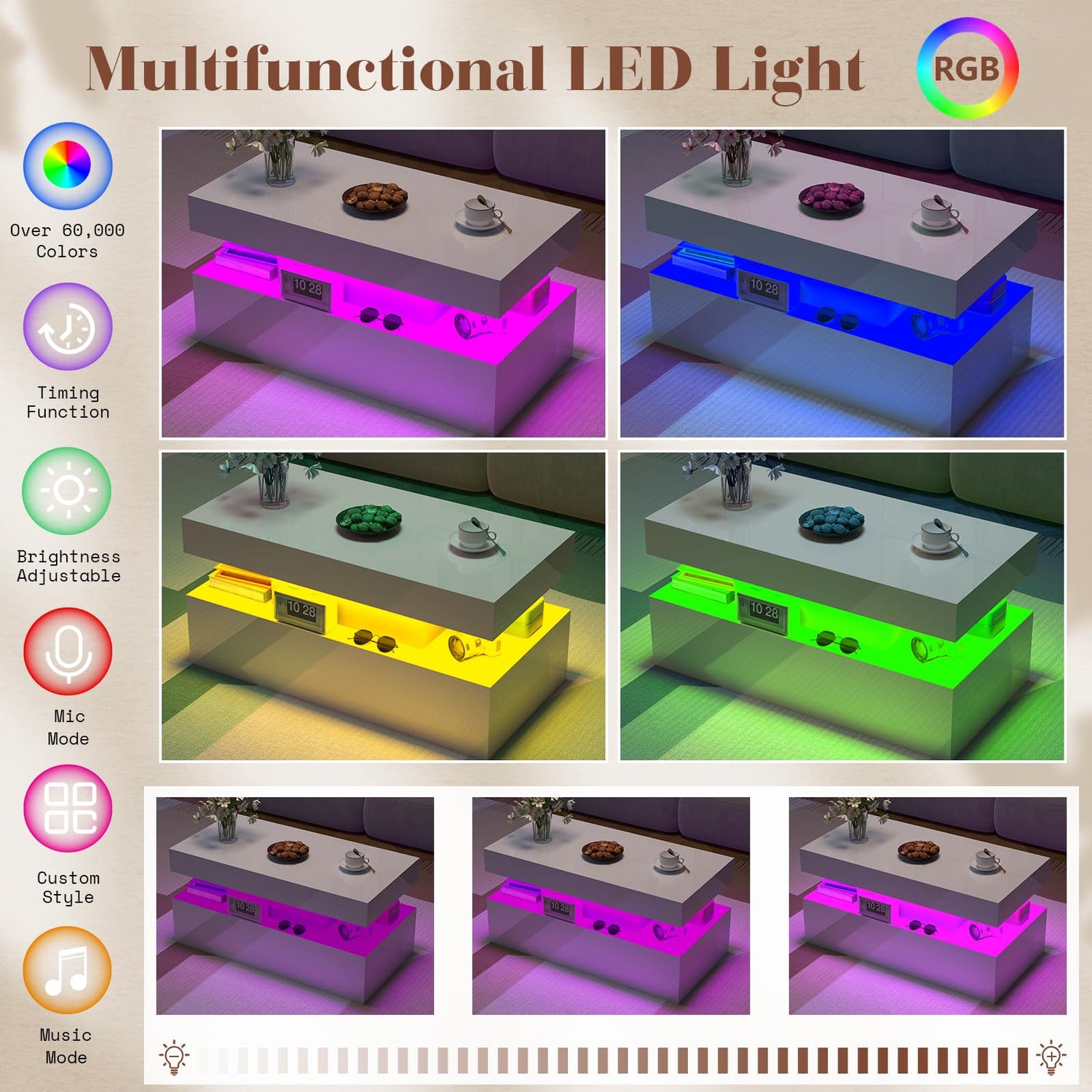 - 【Smart LED Light】LED light of coffee table features over 60,000 colors, adjustable brightness, timer and multiple modes. You could use a remote control and an APP to create your favorite atmosphere