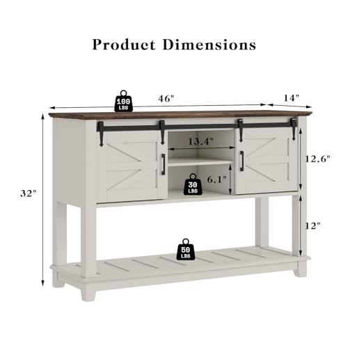 LUXOAK Farmhouse Entryway Table with Sliding Barn Doors, 46" Sofa Table for Living Room, Console Table with Storage Hallway Entrance Table, Antique White