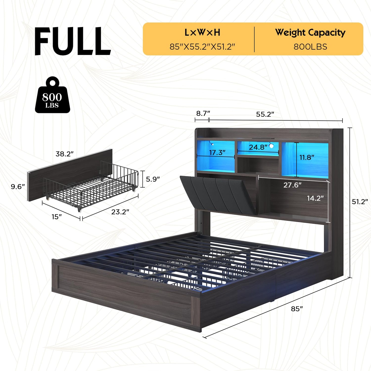 - 【Smart LED Lights】LED lights of the metal bed can be customized with brightness, 60,000+ colors, modes and timer using APP or remote control. Multiple dynamic modes create an energizing atmosphere in your bedroom