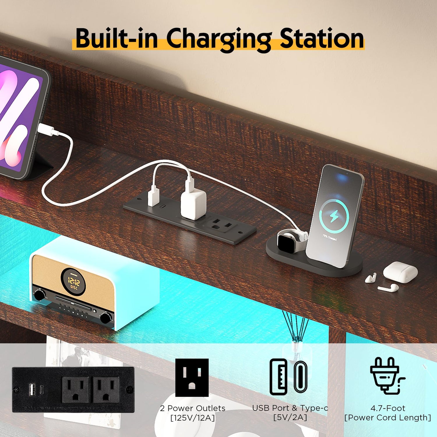 - 【Charging Station】Built-in charging station of the upholstered platform bed is equipped with 2 AC outlets, 1 USB port and 1 Type-c, which is convenient for you to charge phones, tablets and other electronic devices