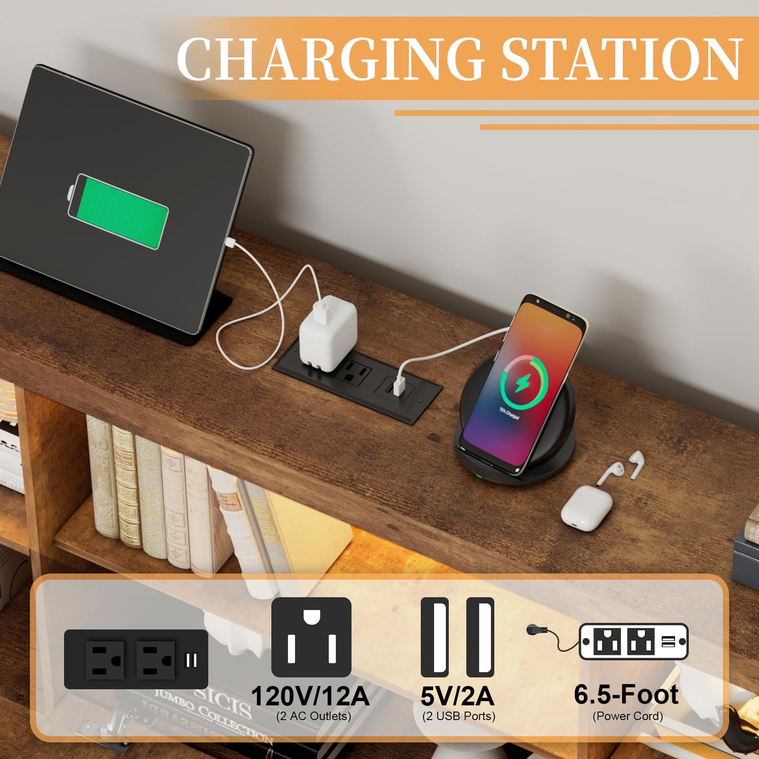 The highlight of this bed frame is its innovative headboard, which includes a built-in charging station equipped with two standard outlets and two USB ports. Say goodbye to tangled cords and hello to convenience as you effortlessly charge your devices while you relax. Moreover, the RGB LED lights with 21 dynamic modes and 20 static colours allow you to set the perfect atmosphere, making every moment in your bedroom special.