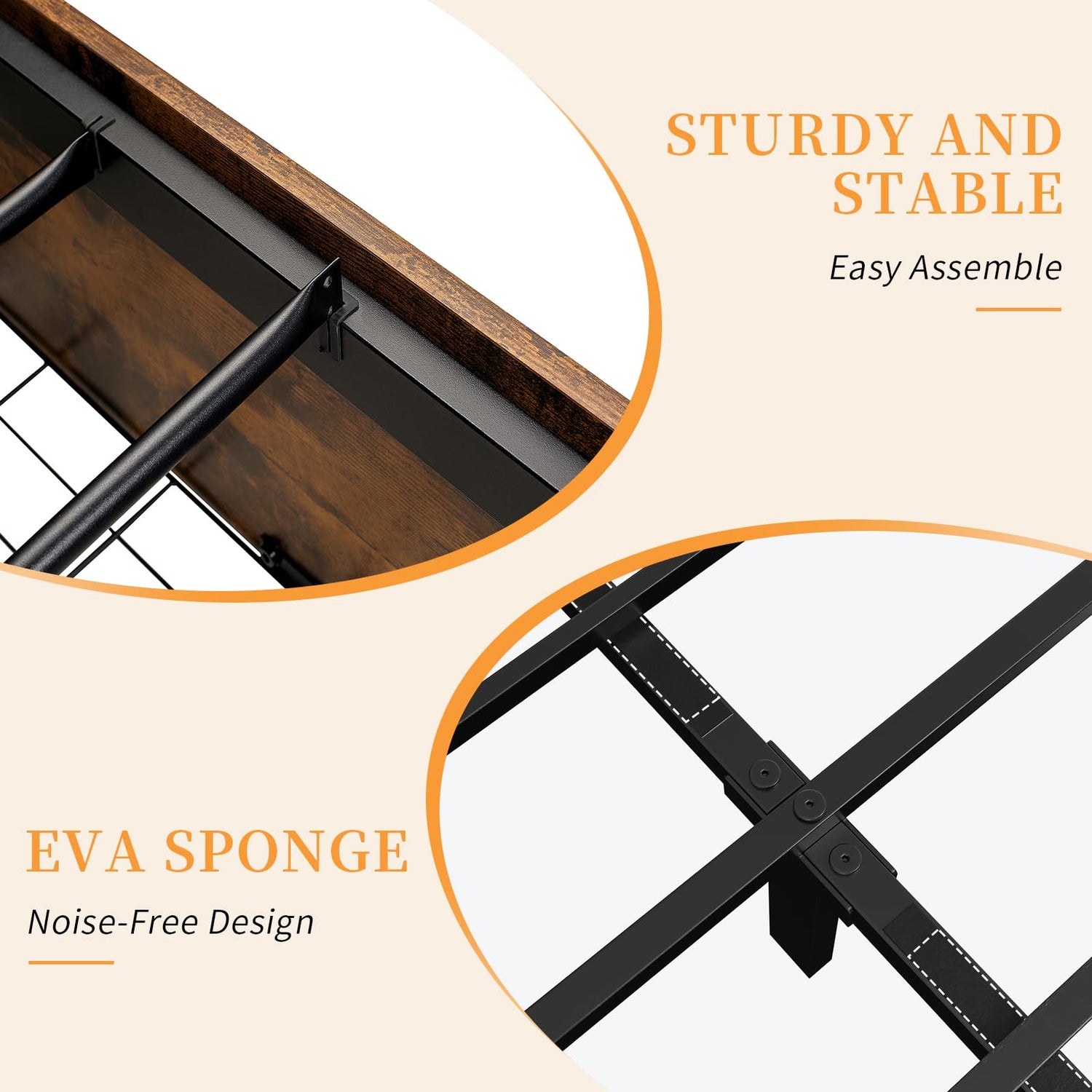 Built for durability and stability, the chunky iron slats are designed to support up to 1000 lbs, accommodating up to six adults without fear of instability. You can rest easy knowing that this bed frame is noise-free, allowing for a peaceful night's sleep.