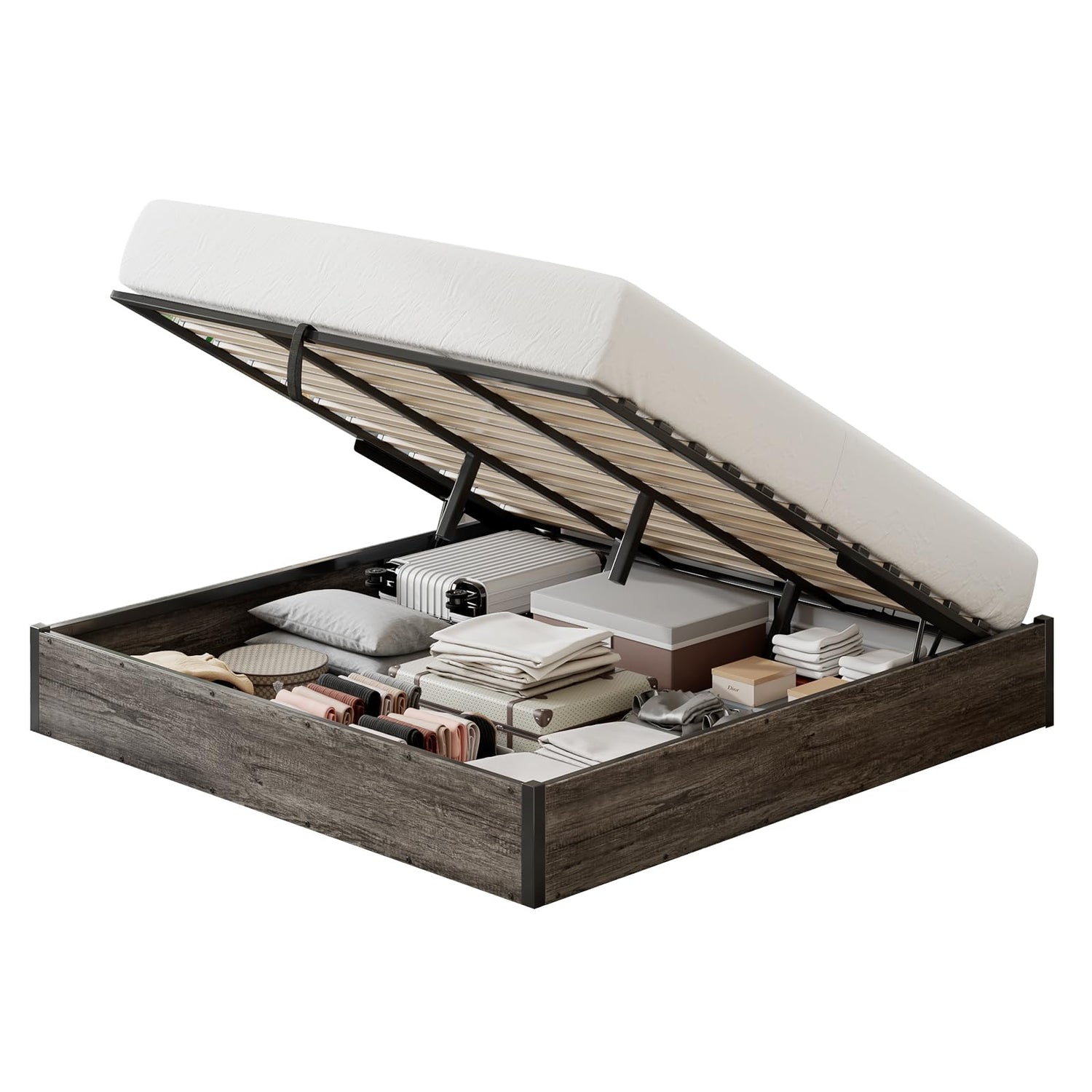 - AMPLE STORAGE-Lift-up design provides complete and ample under-bed storage space. Placing suitcases, seasonal clothing other large items, saves your home space, make your life more tidy and orderly.