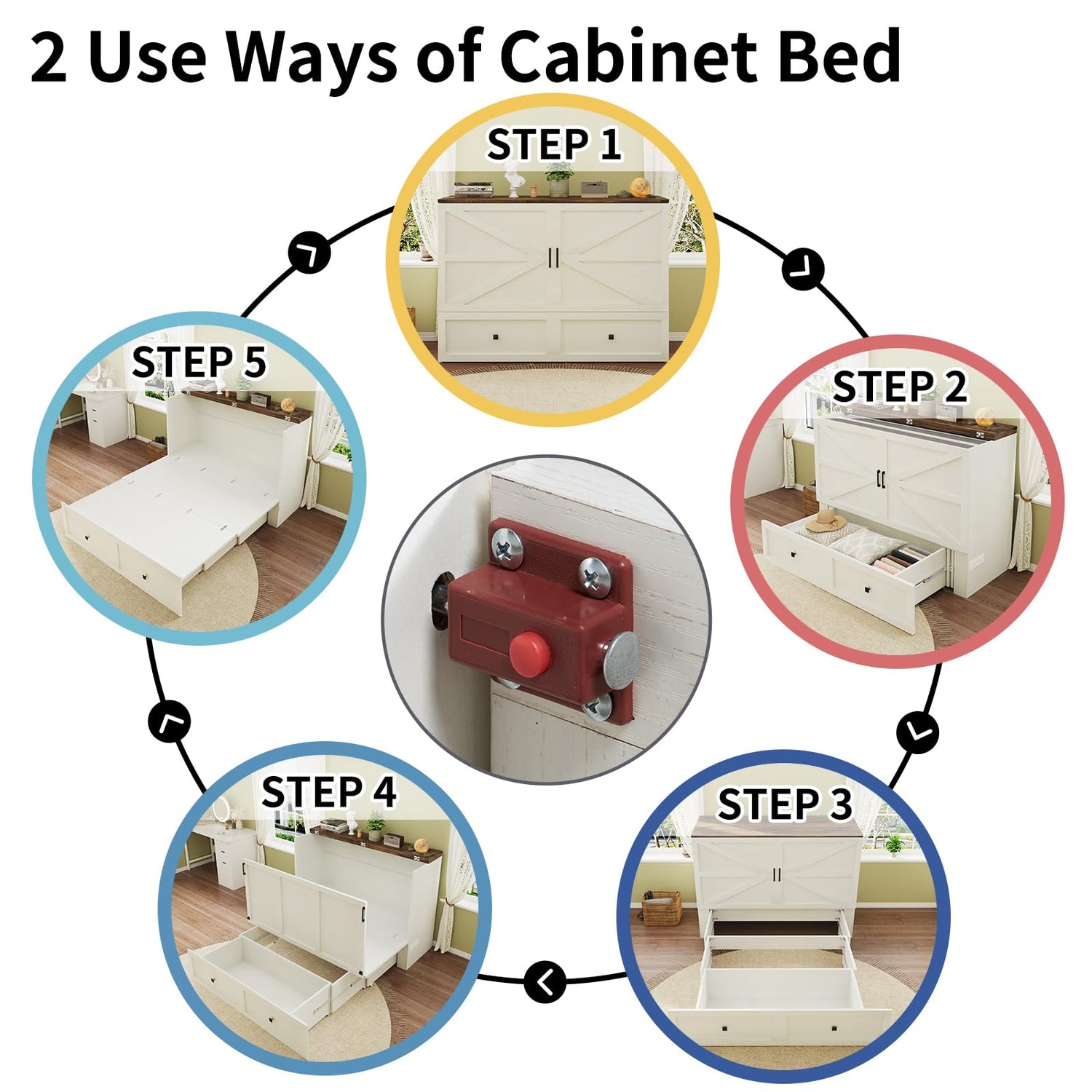 - 【Cabinet Murphy Bed】The practical 2-in-1 Murphy bed can transform your storage cabinet into a bed in just a few steps. When not in use, you can put it as a nice storage cabinet. NO MATTRESS INCLUDED