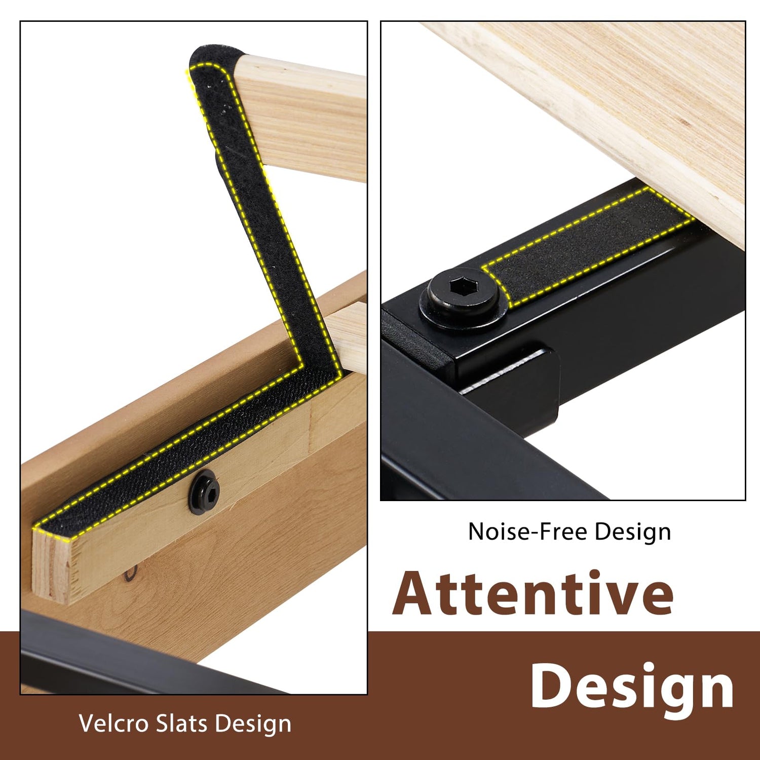 - No Box Spring Needed: The bed frame's closely spaced slats offer strong support for any mattress type, enhancing comfort and extending the mattress's lifespan. Provide you with the best sleeping environment