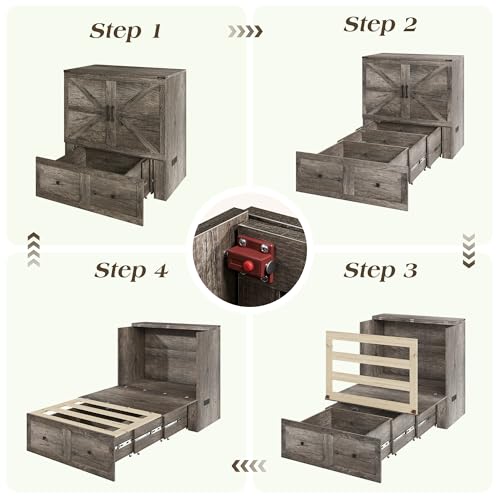 - 【Murphy Bed Cabinet】Transforms from a sleek storage cabinet into a functional twin bed, offering a space-saving solution for guest rooms, home offices, or compact apartments. Mattress not included