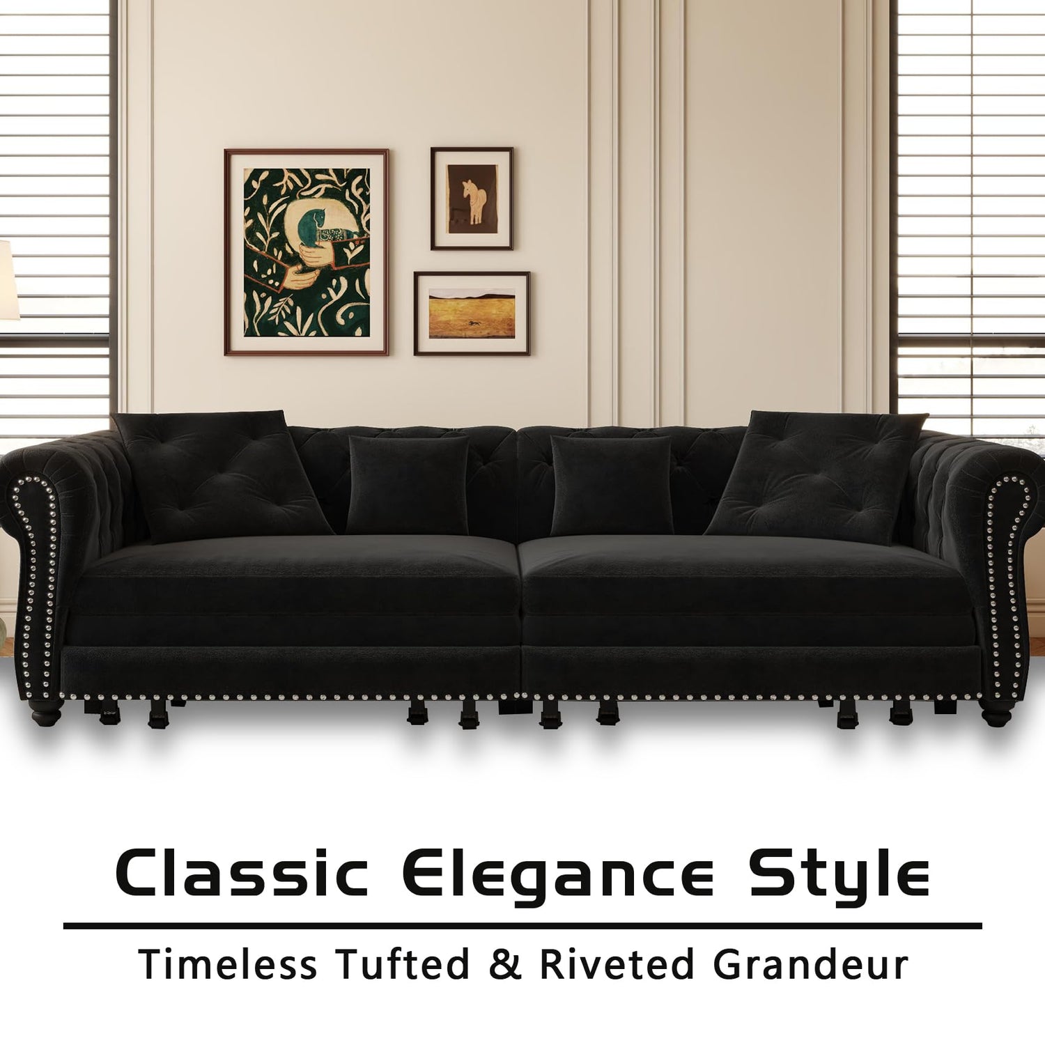 - Premium Velvet Upholstery: Crafted from soft, breathable velvet fabric that resists pilling and wrinkling, this contemporary sofa maintains its elegant appearance with minimal care. The tufted design not only enhances visual appeal but also keeps cushions firmly in place for long-lasting shape retention. Available in sophisticated black and other colors to match any decor.
